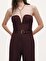 Regular fit ve tam kalıp tasarımıyla zarif bir siluet sunan bu çizgili tulum, modern çizgileri feminen detaylarla bir araya getiriyor. Astarsız dokuma yapısı hafif ve rahat bir kullanım sağlarken, kolsuz ve straplez kalp yaka tasarımı romantik bir zarafet katıyor. Metal fermuar kapaması tuluma modern bir bitiş kazandırırken, kemer detayı bel hattını vurgulayarak daha belirgin bir görünüm yaratıyor. Çizgili dokusu ise parçaya ritmik, şehirli ve sofistike bir hava ekliyor. Hem özel davetlerde hem de iddialı günlük stillerde kolayca öne çıkan, etkileyici bir parça.