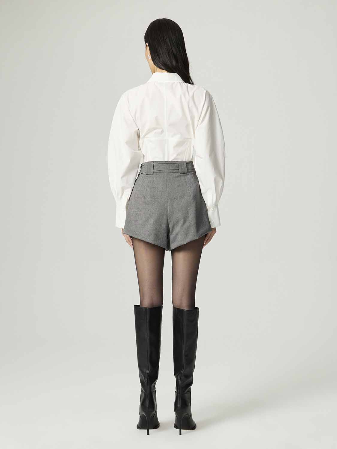 Beli kavrayıp, bacakları uzun gösterecek şekilde tasarlanan bu kemerli yüksek bel mini şort, sıcak havaların vazgeçilmezi ve özel bir dokunuşa sahip. Çıkarılabilir kemerli, yapılandırılmış bel bandı, işlevsellik için yan cepler ve gizli fermuarlı bu şort, şık bir görünüm için canlı dokuma kumaştan üretilmiştir. İster içine sokulmuş bir bluzla ister bol bir blazer ile kombinleyin, yaz görünümünüze zahmetsiz bir zarafet katar.