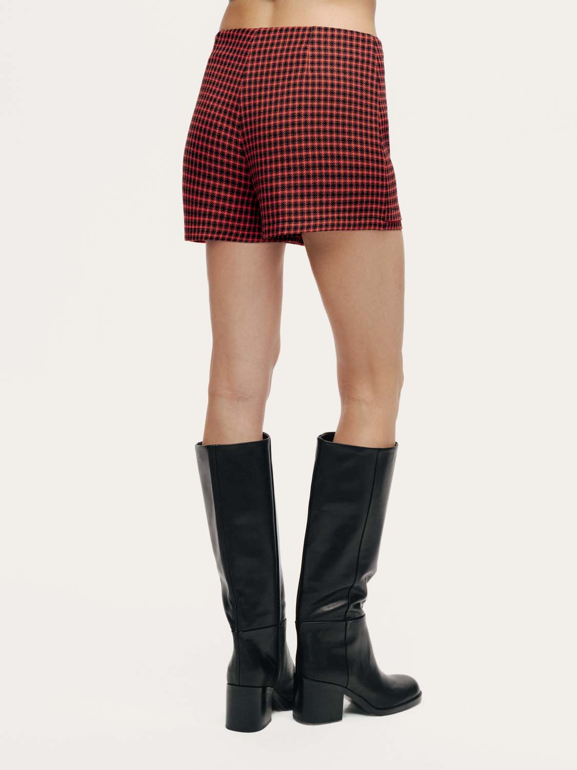 Ürün Açıklaması: Regular fit, tam kalıp, astarsız, dokuma, yandan gizli fermuar kapamalı, desenli mini boy şort etek