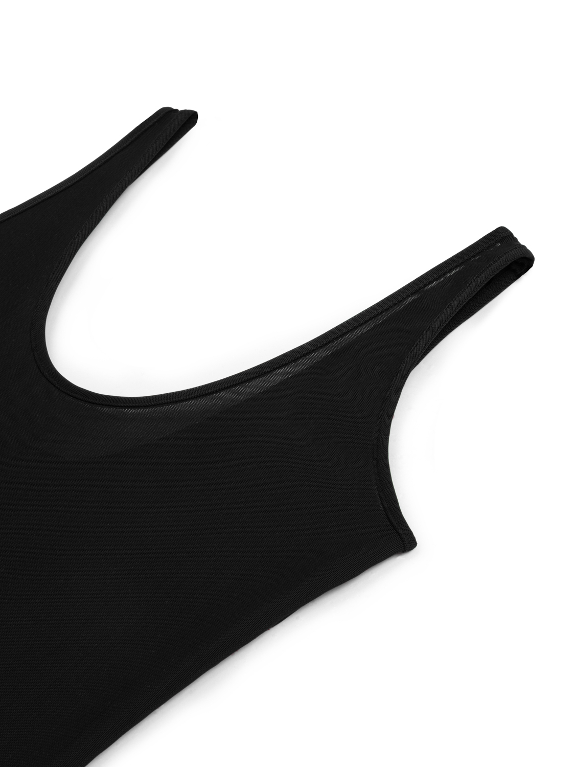 • Ürün Açıklaması: Slim fit, tam kalıp, astarsız, dokuma, alttan çıt çıt kapamalı, kolsuz, geniş yaka, sırt dekolteli, transparan body
