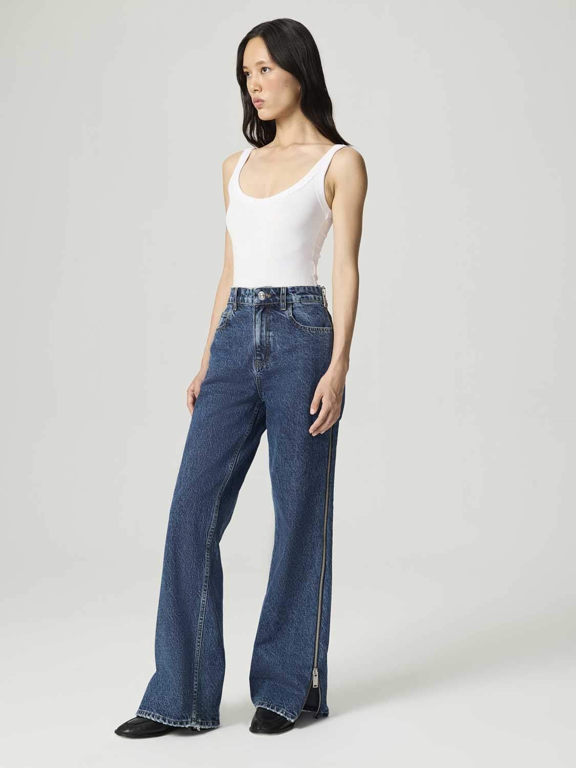 Bu fermuar detaylı kot pantolonla kot giyiminize iddialı bir hava katın. Bedeninize tam oturan bir silüete sahip, normal kesimli bu pantolon, ön metal düğme ve fermuarlı kapama, orta yükseklikte bel ve klasik kot görünümünü tamamlayan şık fermuar detaylarıyla öne çıkıyor. Dayanıklı dokuma denimden üretilen bu pantolon, biraz ekstra hava gerektiren izin günleri için ideal.