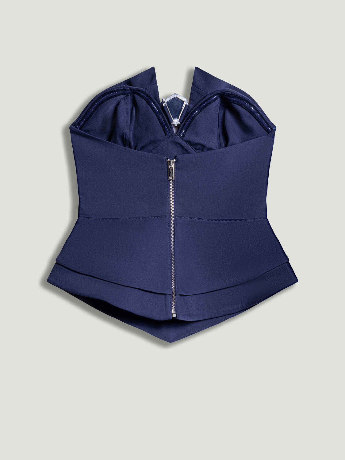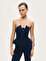 Modern ve iddialı tasarımıyla öne çıkan bu straplez büstiyer, feminen ve güçlü bir siluet oluşturur. Dokuma kumaşı sayesinde formunu korurken, slim fit kesimi vücuda kusursuz şekilde oturur. Straplez yaka detayı omuzları ön plana çıkararak zarif bir görünüm sunarken, aksesuar detayı tasarıma sofistike ve dikkat çekici bir dokunuş katar. Astarlı yapısı konfor ve güvenli kullanım sağlarken, arka kısmındaki metal fermuar kapama pratik ve şık bir tamamlayıcıdır. Özel davetlerden gece kombinlerine kadar stil sahibi görünümler için ideal bir parçadır.