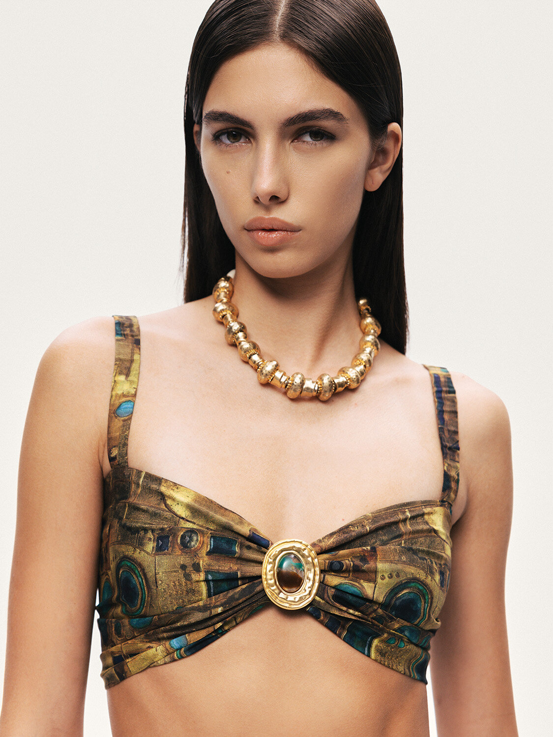 Feminen ve dikkat çekici bir stil için tasarlanmış Aksesuar Detaylı Desenli Büstiyer, slim fit kesimiyle vücuda otururken, astarsız dokuma kumaşı hafiflik ve rahatlık sunuyor. İnce askıları ve klips kapaması sayesinde kullanım kolaylığı sağlarken, desenleri ve şık aksesuar detayları her kombine sofistike bir dokunuş katıyor. Günlük stilinizden özel akşam davetlerine kadar her an tarzınızı ön plana çıkaracak bu büstiyer, gardırobunuzun vazgeçilmez parçası olacak.