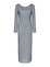 Ürün Açıklaması: Geniş yaka, uzun kollu, sırt dekolteli, çizgili elbise