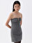 Ürün Açıklaması: Slim fit, tam kalıp, astarlı, dokuma, ince gizli fermuar kapamalı, önü süs düğmeli, straplez yaka mini boy elbise.