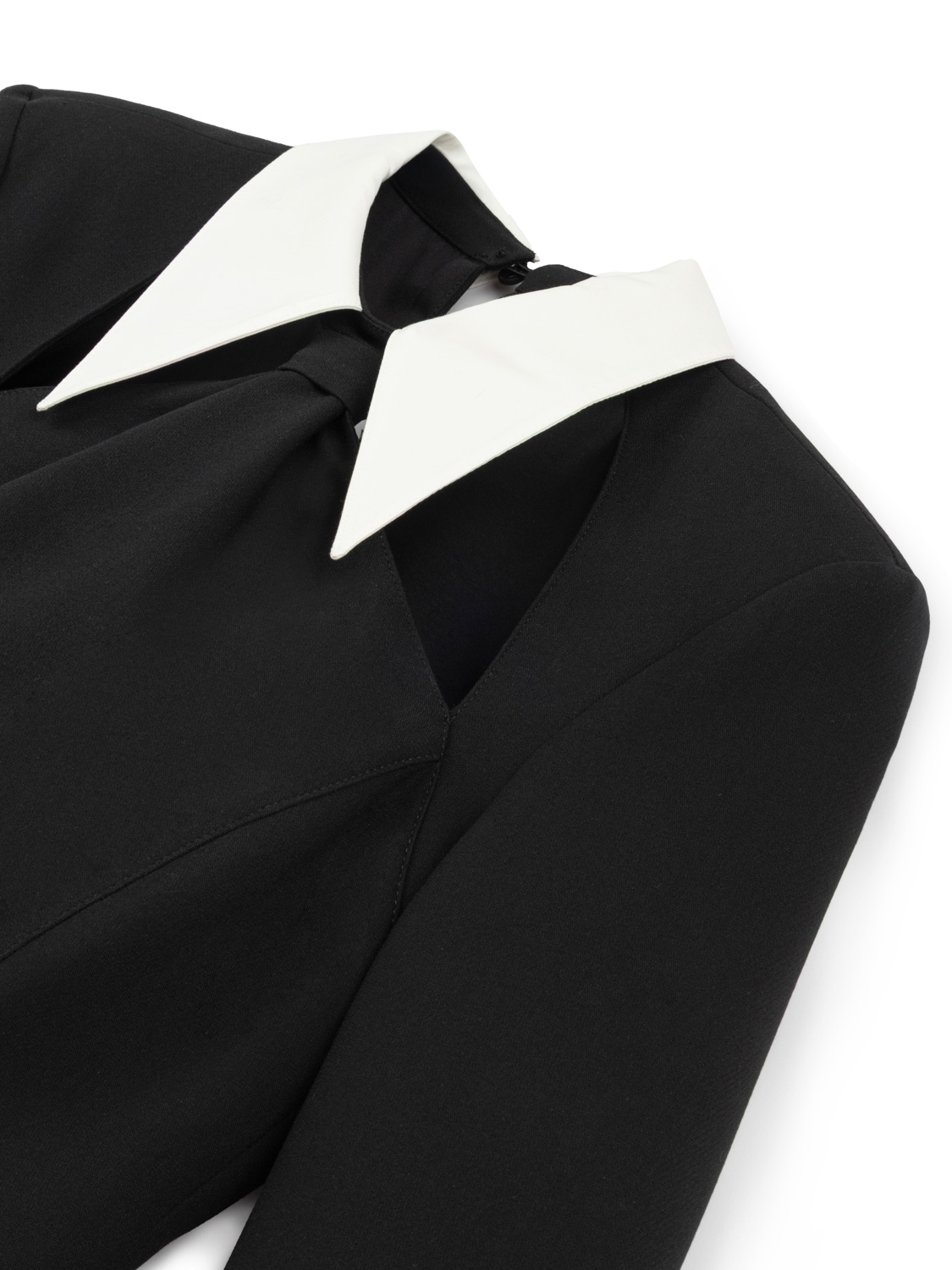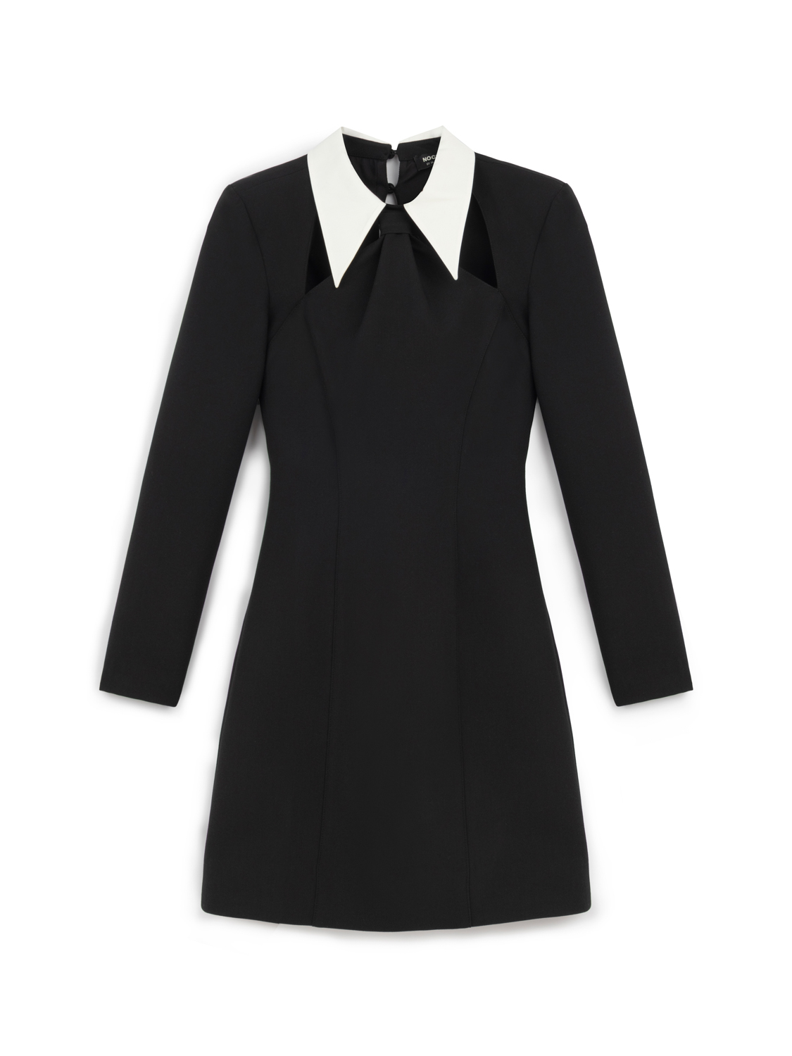 Ürün Açıklaması: Vatkalı, uzun kollu, yakalı, kravat detaylı, cut out detaylı, yırtmaçlı, mini boy elbise.