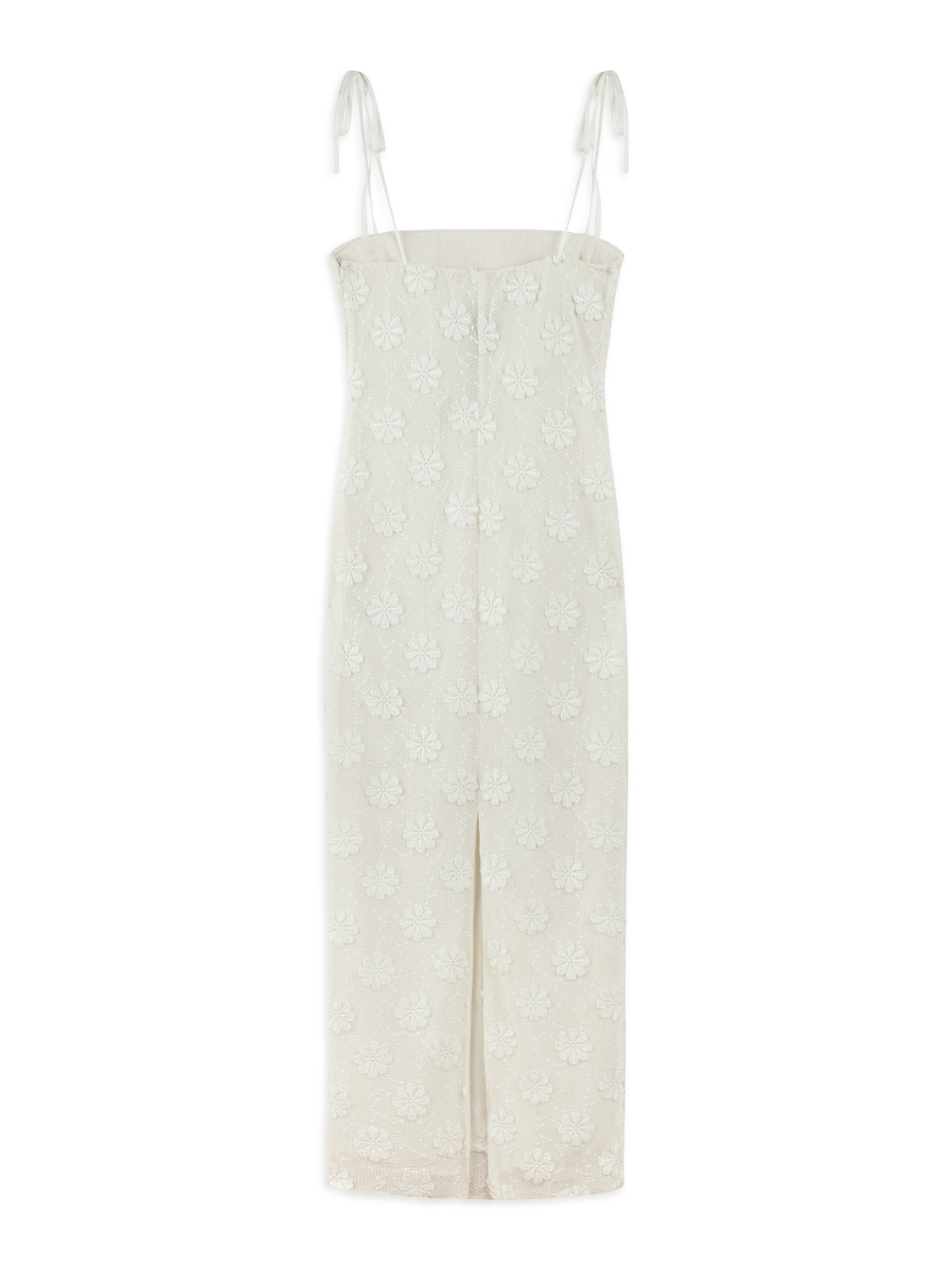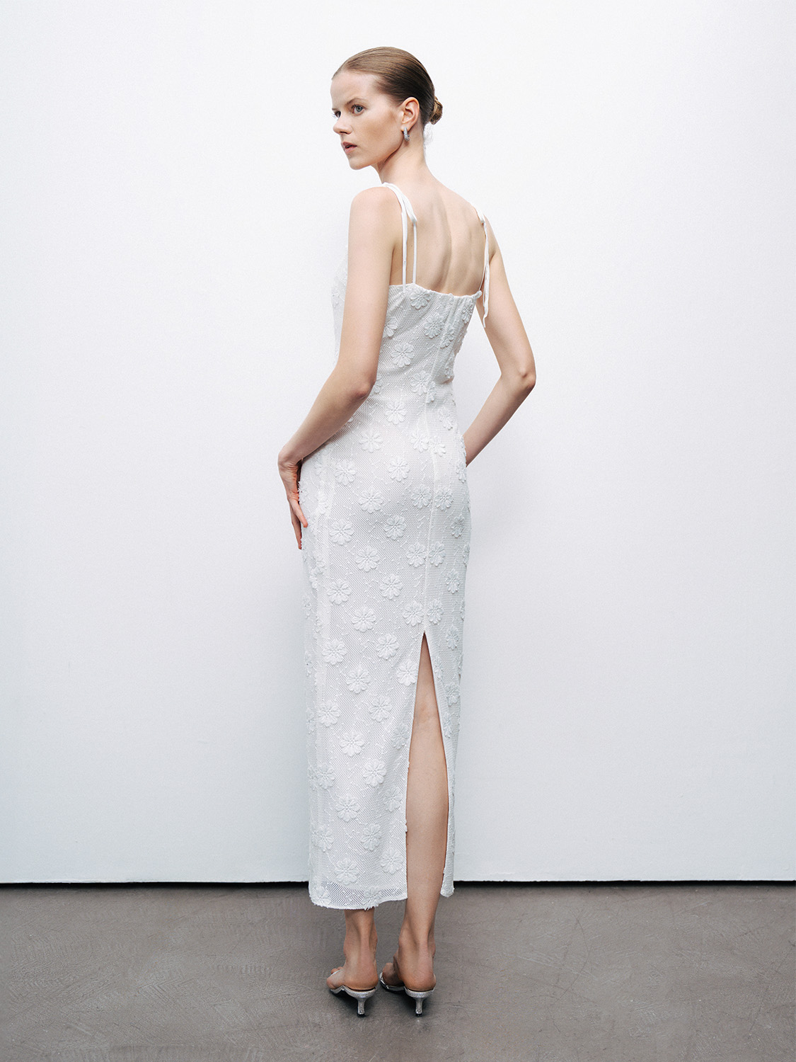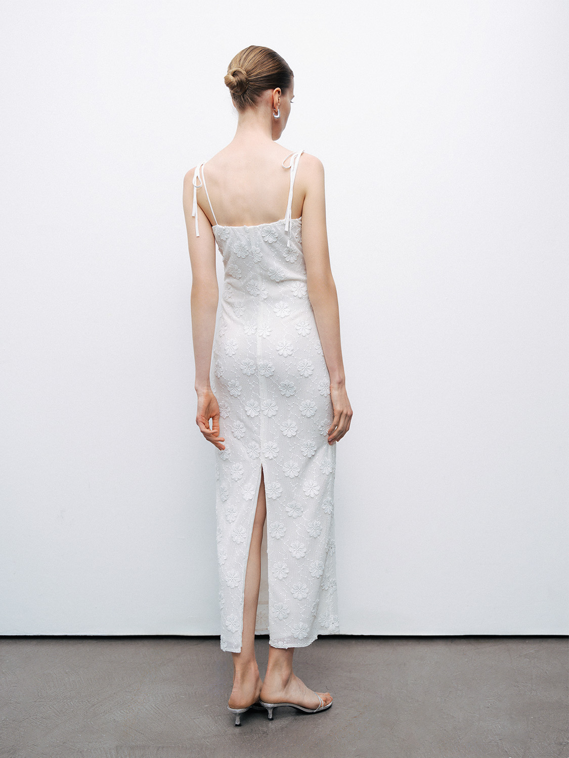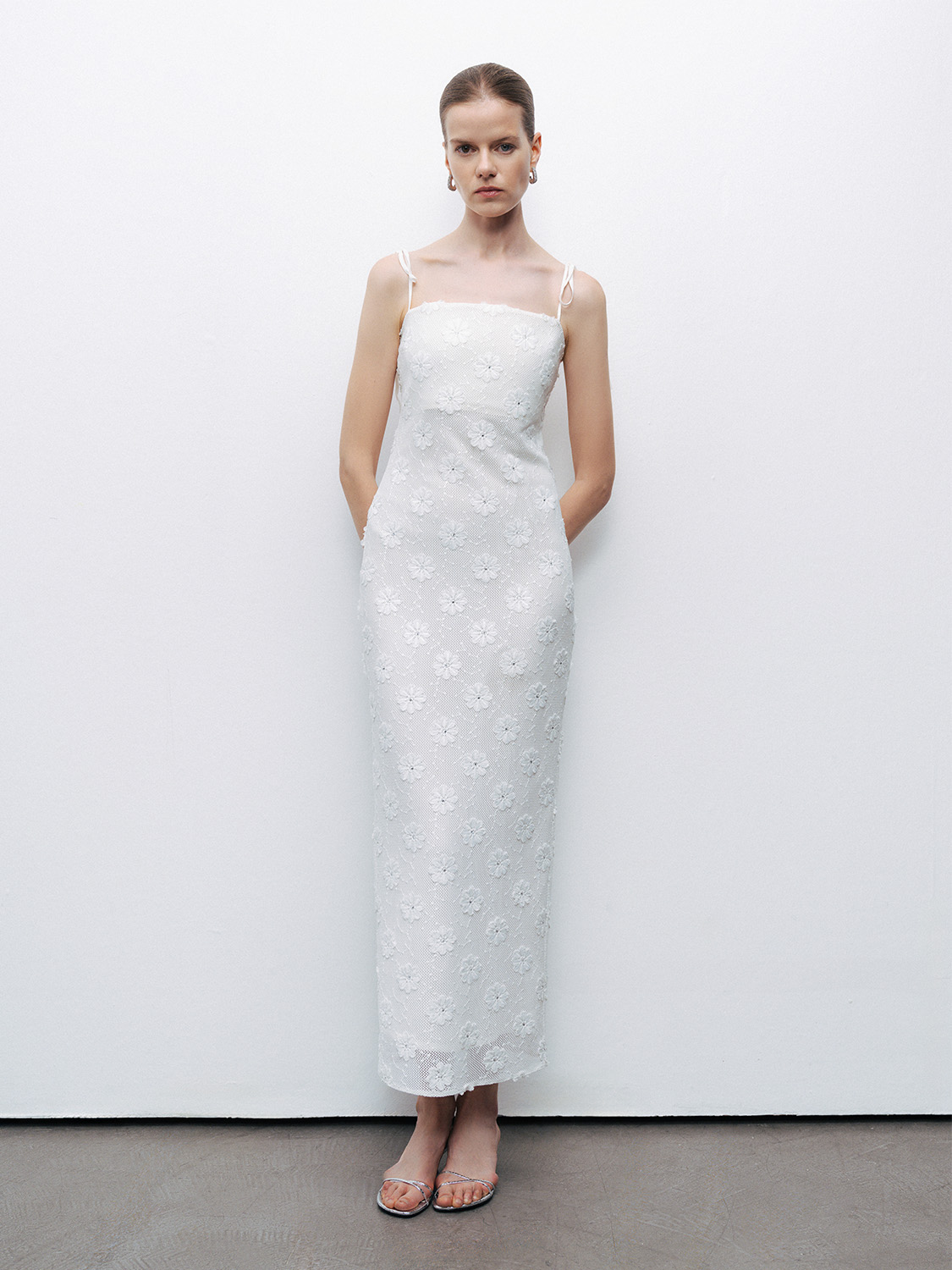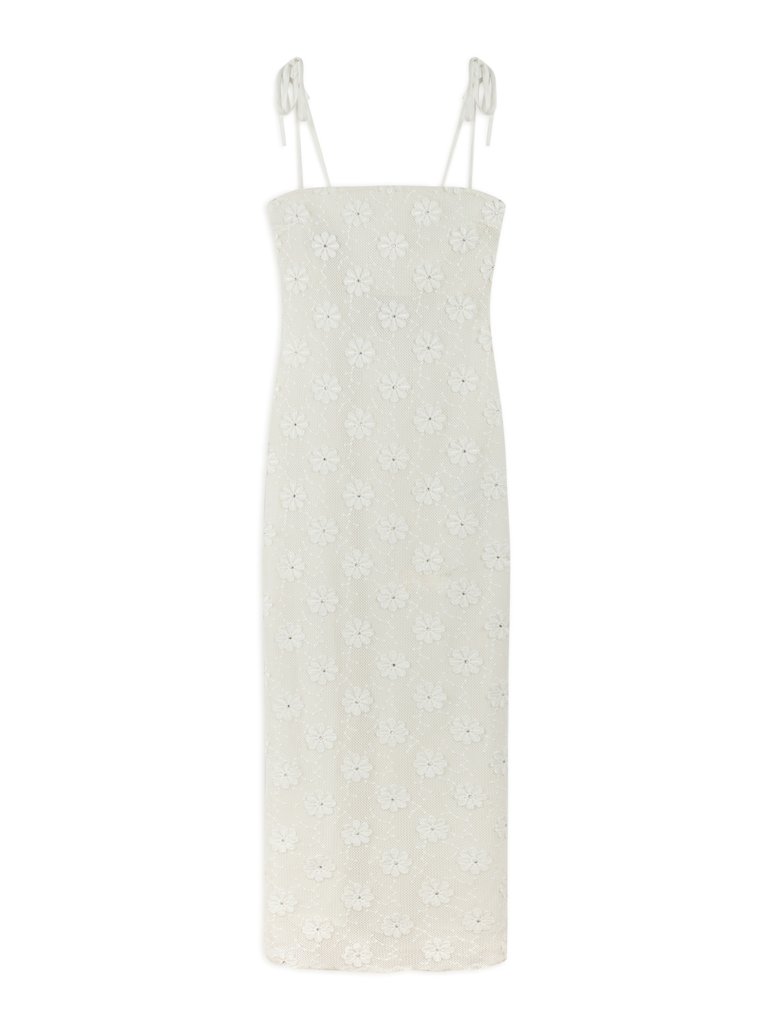 Ürün Açıklaması: Regular fit, tam kalıp, astarlı, yandan gizli fermuar kapamalı, düz yaka, bağlama ip askılı, yapıştırma taşlı, brodeli maxi boy elbise