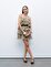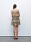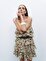 Ürün Açıklaması: Regular fit, tam kalıp, astarsız, arkadan gizli fermuar kapamalı, straplez yaka, desenli, kemer detaylı fırfırlı mini boy elbise