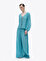Ürün Açıklaması: Relaxed fit, tam kalıp, astarsız, uzun kollu, V yaka, önden ip bağlamalı, kol ucu büzgü bağlamalı, arkası boncuk işlemeli gömlek