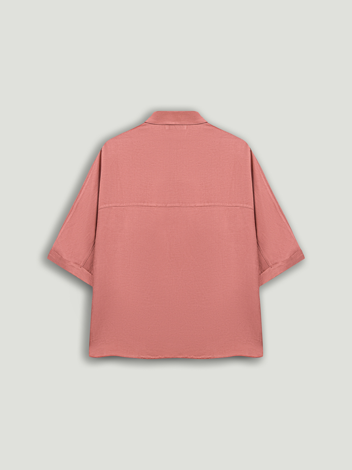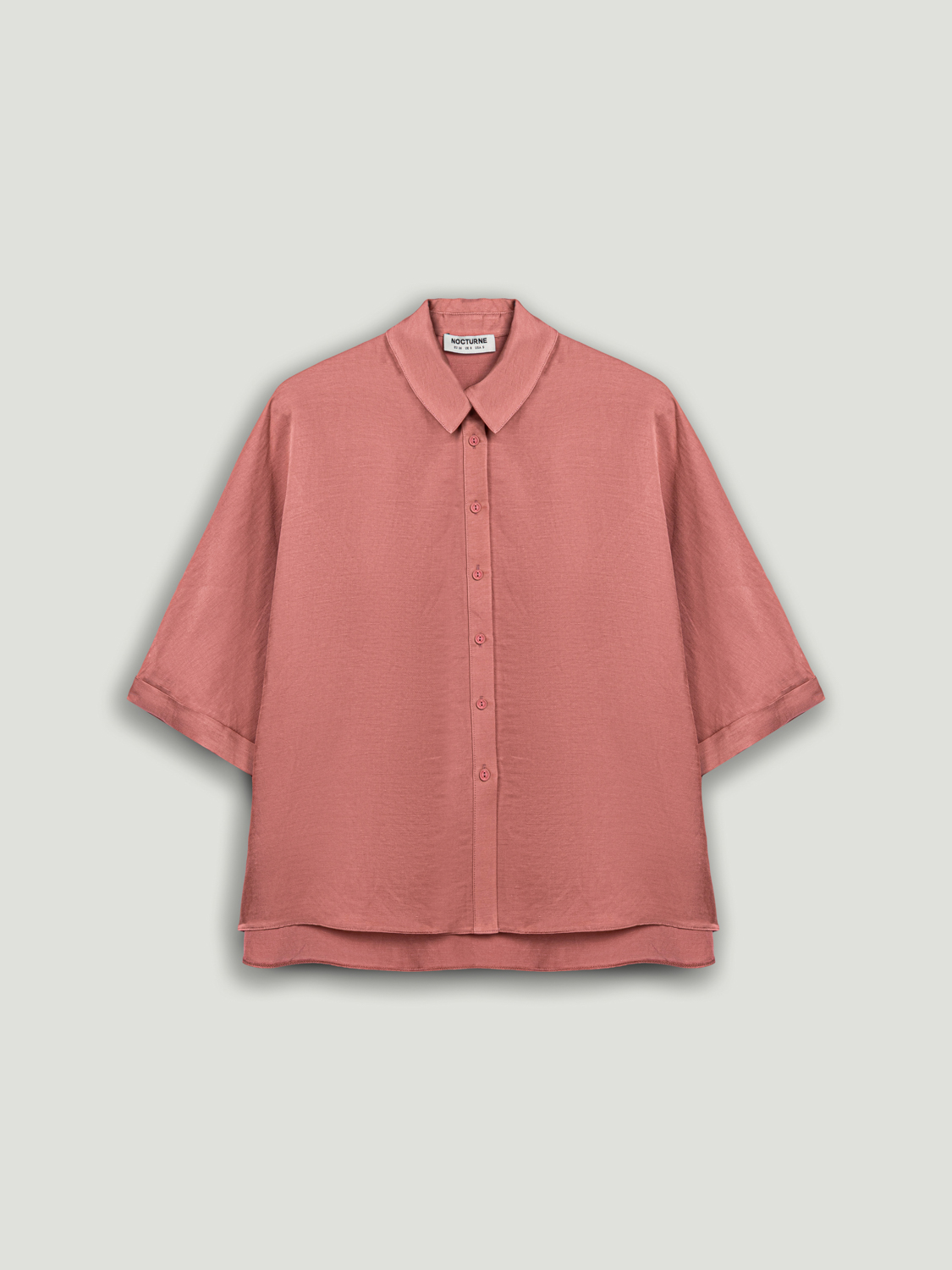 • Ürün Açıklaması: Oversize fit, tam kalıp, astarsız, önden düğme kapamalı, manşetli kıvrık kısa kollu, dökümlü gömlek