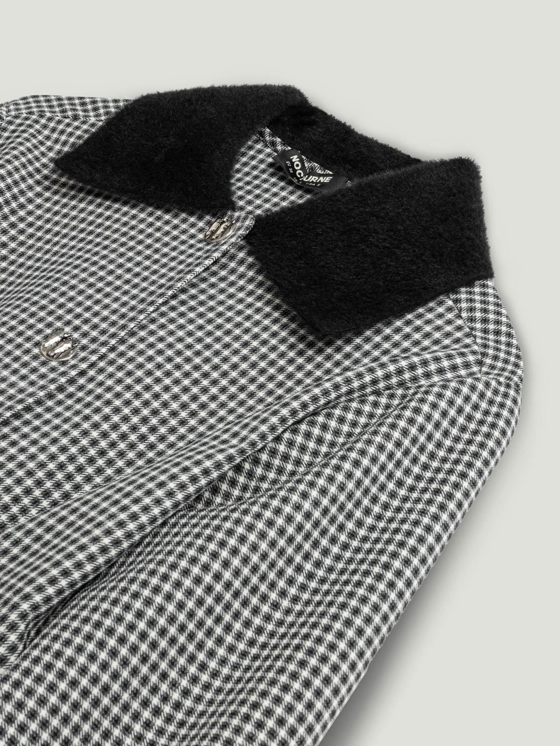 Bu özel dikim ekose ceket, klasik zarafeti modern yapıyla birleştiriyor. Şekillendirilmiş bel kısmı, etkileyici korse tarzı arka bağcıkları ve yumuşak kontrast yün yakasıyla tasarlanan ceket, vücuda oturan zarif bir silüet sunuyor. Uzun kolları, metalik logolu düğmeli ön kapaması ve sade etek ucu detaylarıyla, özel dikim görünümünüzü ofisten geceye taşımak için mükemmel bir parça.