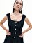 Ürün Açıklaması: Regular fit, tam kalıp, astarsız, garnili, gizli fermuar kapamalı, kare yaka, düğme aksesuar detaylı, korse görünümlü mini boy elbise