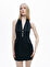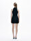 Ürün Açıklaması: Slim fit, tam kalıp, astarlı, dokuma, gizli fermuar kapamalı, kolsuz, katlı yaka, ara biye detaylı, crushlı, inci aksesuar düğmeli mini boy elbise