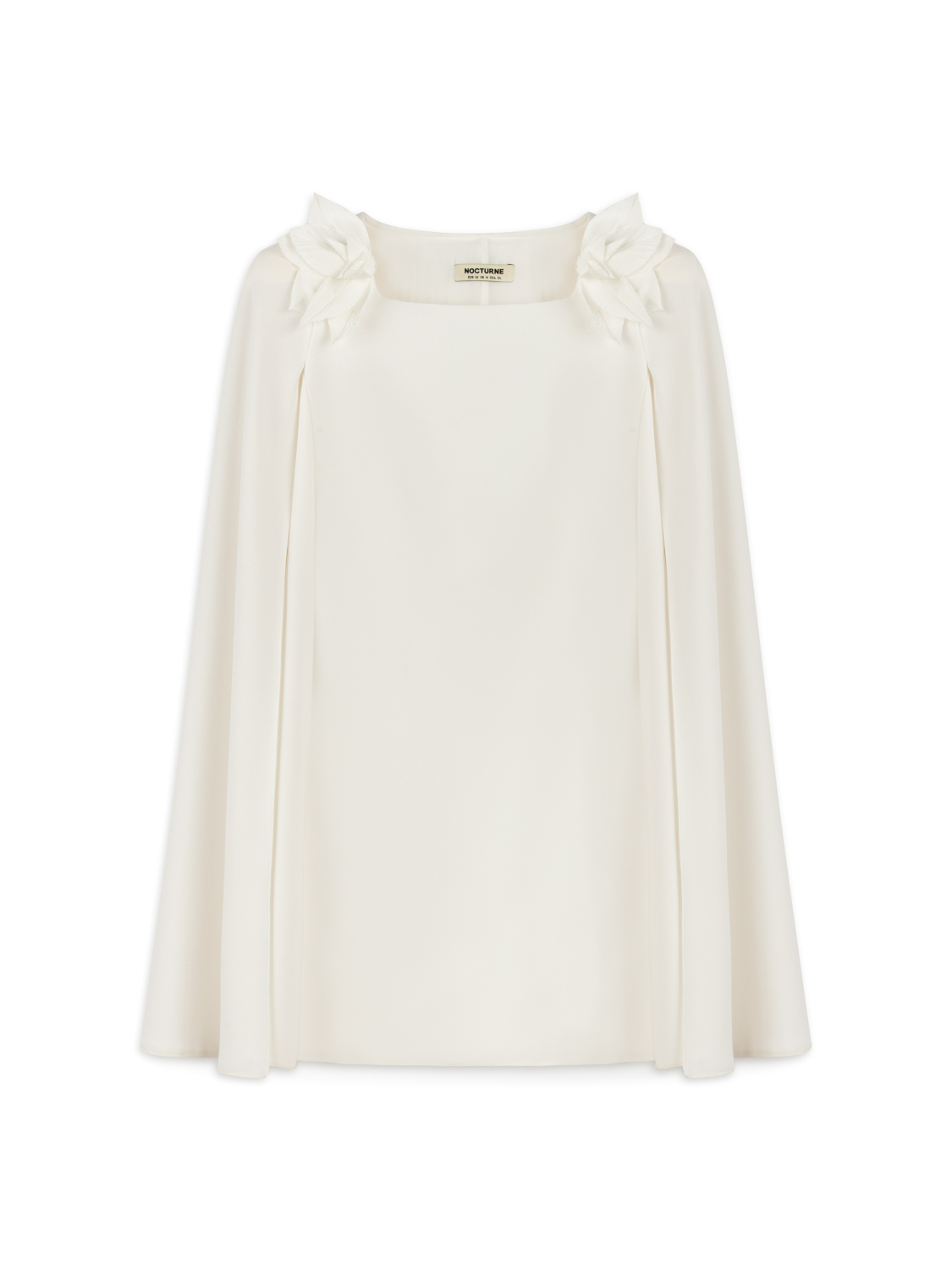 • Ürün Açıklaması: Relaxed fit, tam kalıp, astarlı, bisiklet yaka, vatkalı, gizli fermuar kapamalı, cepsiz, iki adet tafta çiçek detaylı, yırtmaçlı, pelerin kollu mini elbise