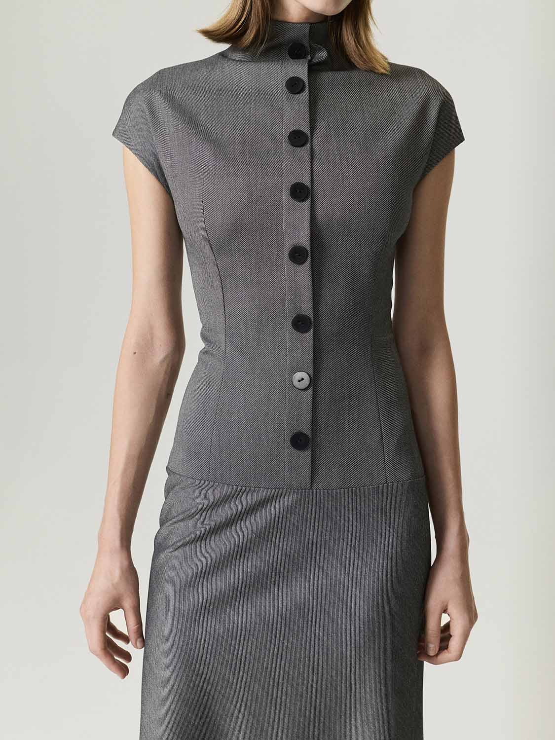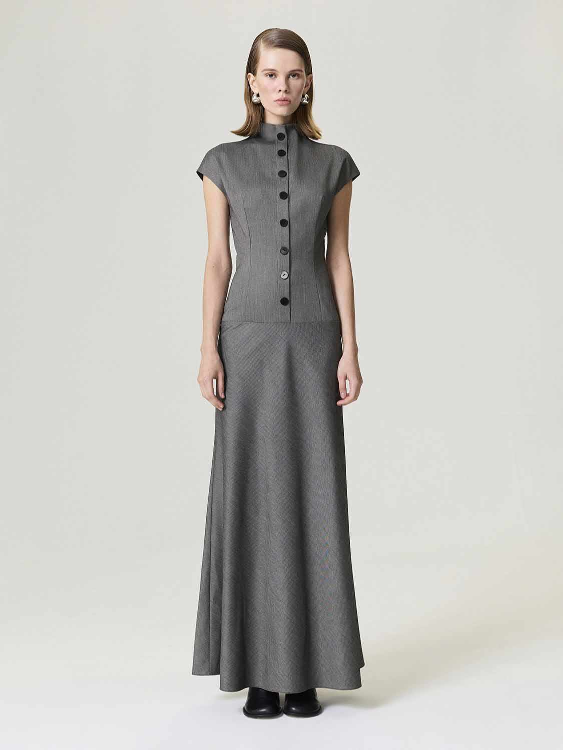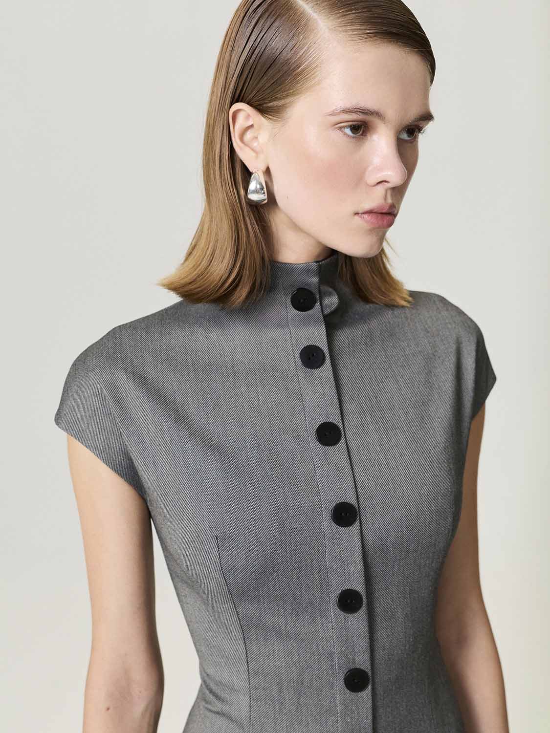 Modern siluetiyle zamansız bir zarafet sunan bu düğme detaylı maxi elbise, sade şıklığın en etkileyici halini yansıtıyor. Regular fit formu ve tam kalıbı sayesinde vücuda zarifçe otururken, balıkçı yaka detayı sofistike bir duruş kazandırıyor. Dokuma kumaşıyla konforu ve zarafeti bir arada sunan bu maxi elbise, ön kısmındaki zarif düğme detaylarıyla minimal ama güçlü bir stil vurgusu yapar. Gündüzden geceye uzanan her ortamda fark edilmek isteyenler için ideal bir seçim.