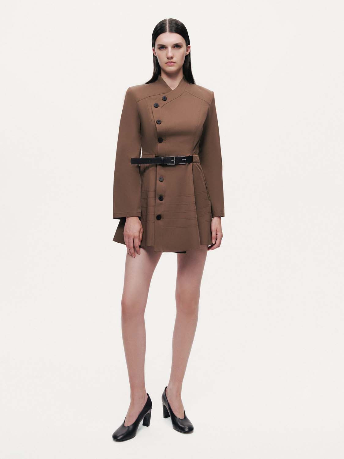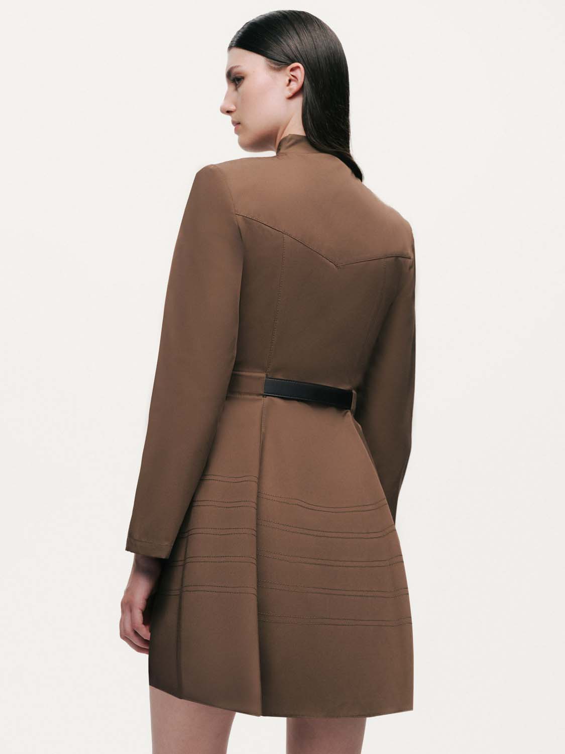 Zarif bir duruşla modern çizgileri buluşturan bu mini elbise, hem şehir şıklığının hem de zamansız stilin temsilcisi. Regular fit kesimiyle vücuda dengeli bir oturuş sağlarken, hakim yaka detayı sofistike bir görünüm kazandırır. Uzun kolları ve mini boy formu arasında kusursuz bir denge kuran tasarım, ön kısmındaki düğme detaylarıyla klasik bir dokunuş sunar. Bel kısmındaki kemer detayı ise silueti vurgulayarak feminen bir zarafet yaratır. Astarsız dokuma kumaşı sayesinde hafif ve rahat bir kullanım sağlayan bu elbise, ofis şıklığından akşam davetlerine kadar her anın kurtarıcı parçası olmaya aday.