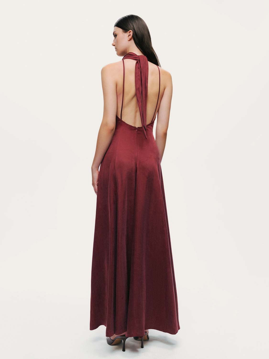 Halter Yaka Sırt Detaylı Maxi Elbise