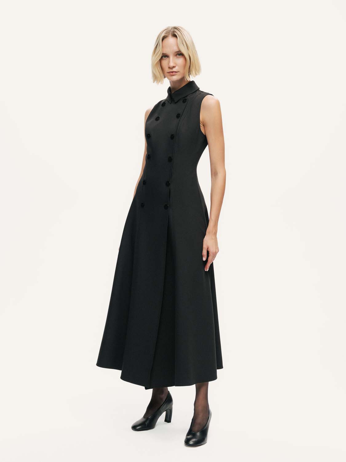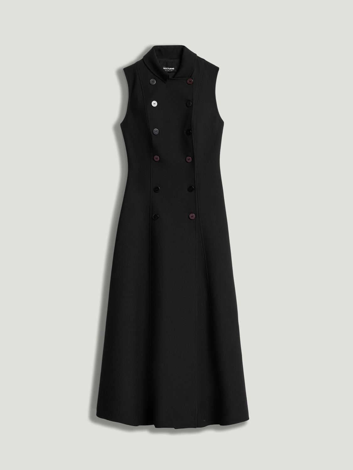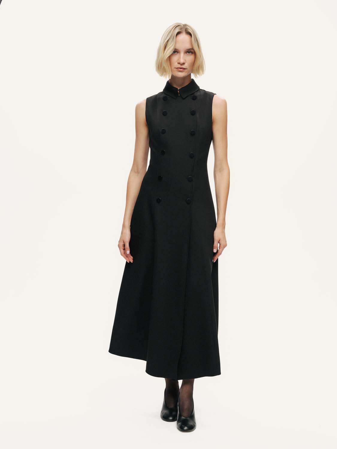 Ürün Açıklaması: Regular fit, tam kalıp, astarlı, dokuma, kolsuz, katlı yaka, kruvaze düğme kapamalı maxi boy elbise