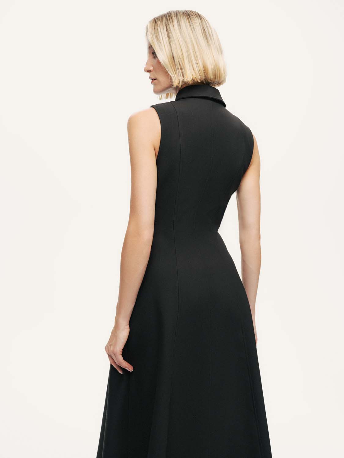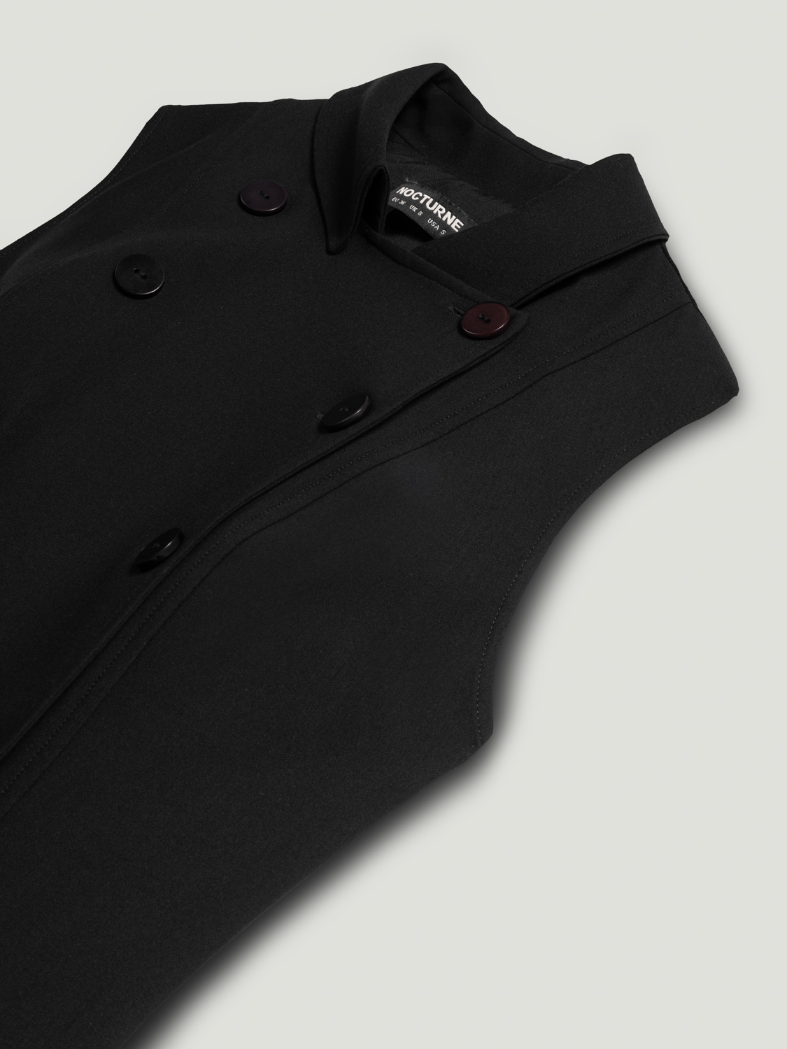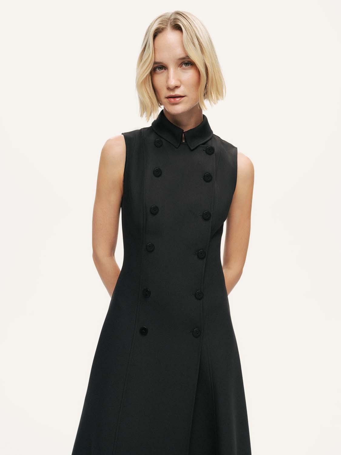 Ürün Açıklaması: Regular fit, tam kalıp, astarlı, dokuma, kolsuz, katlı yaka, kruvaze düğme kapamalı maxi boy elbise