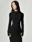 Yumuşak ve esnek jarse kumaştan üretilen bu dar kesim, yere kadar uzanan elbise, şık ve mevsime uygun bir silüet için sofistike bir balıkçı yaka ve uzun kollara sahiptir. Ön ve arka kısımdaki stratejik fırfırlar, beli vurgulayan şekillendirilmiş bir etki yaratır. Drapeli yan paneller etkileyici bir akıcılık katarken, stilinizden ödün vermeden rahatlık sağlar. İster bir kokteyl etkinliği ister kış partisi olsun, bu astarsız maksi elbise, modern bir dokunuşla zamansız bir ihtişam sunar. Sonbahar günleri, ofisten akşam yemeğine geçiş günleri veya hafta sonu brunch'ları için mükemmeldir; iddialı bir mevsim görünümü için bilekte botlar ve deri bir ceket ile kombinleyebilirsiniz.