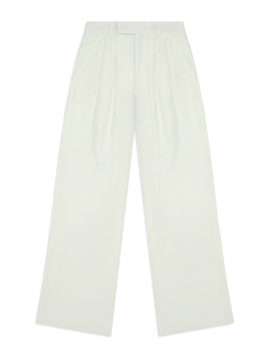 Ürün Açıklaması: Regular fit, tam kalıp, astarlı, dokuma, önden agraf, düğme ve fermuar kapamalı, normal bel, pens detaylı, geniş paça keten pantolon