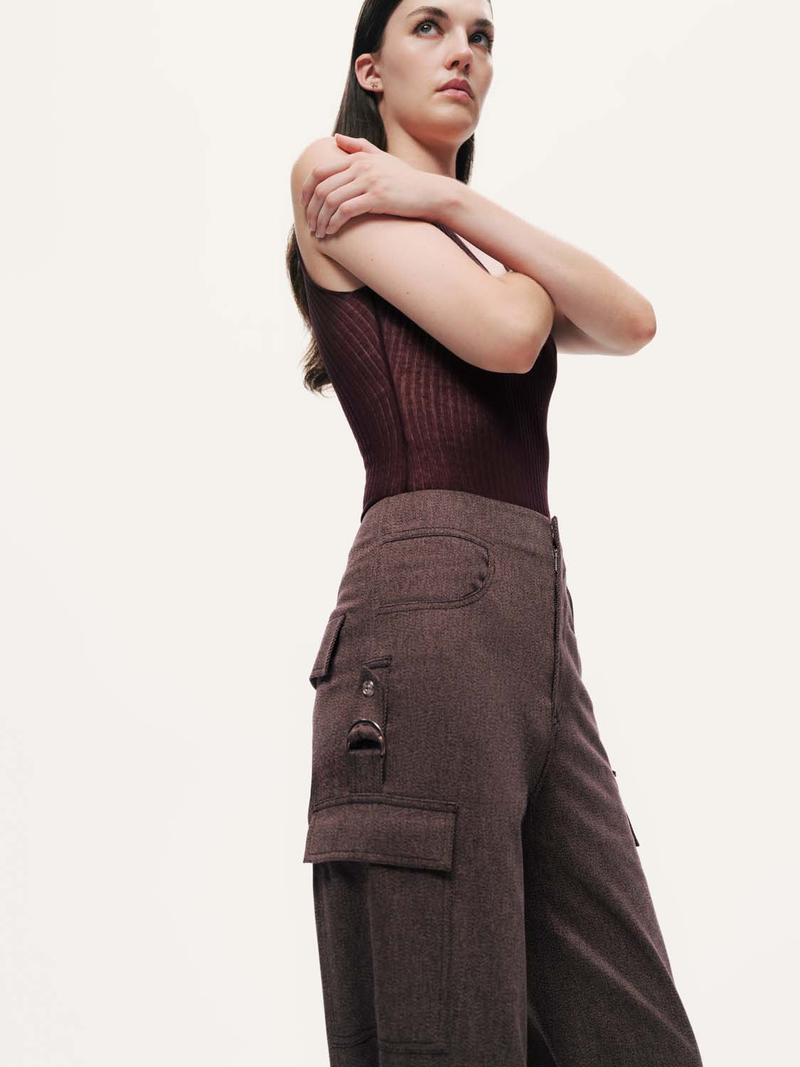 Fonksiyonel tasarımı modern detaylarla buluşturan bu kargo pantolon, regular fit kesimiyle konforlu ve güçlü bir duruş sunar. Yüksek bel formu silueti dengelerken, cepli yapısı tasarıma dinamik bir karakter kazandırır. Gizli kanca ve fermuar kapaması sade bir görünüm sağlarken, kemer detayı pantolona stil sahibi bir vurgu ekler. Günlük şehir stilinde hem rahat hem iddialı kombinler için ideal bir parçadır.