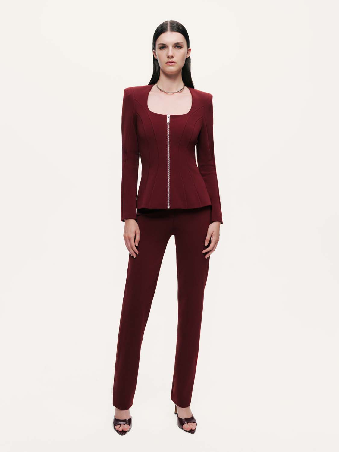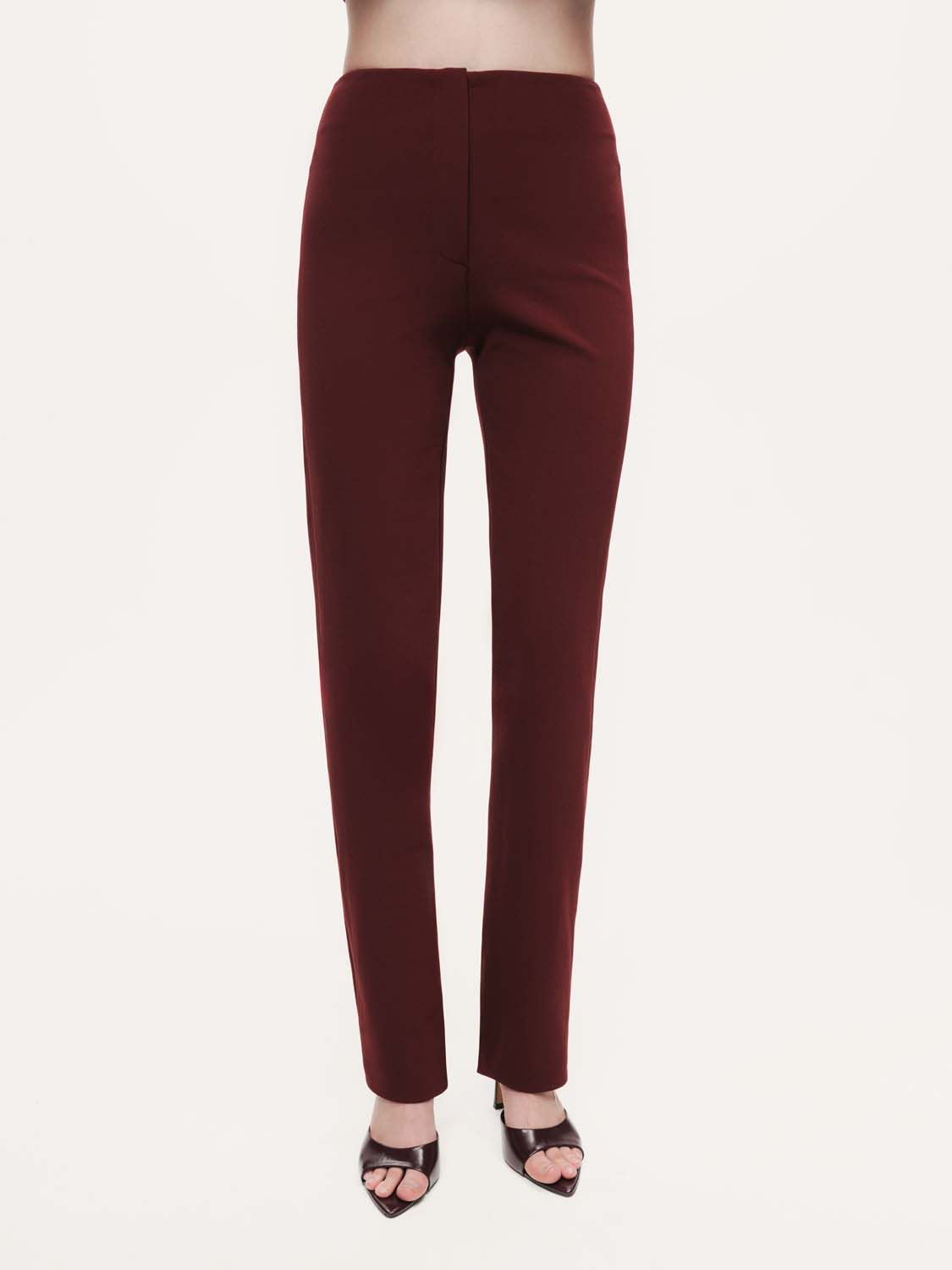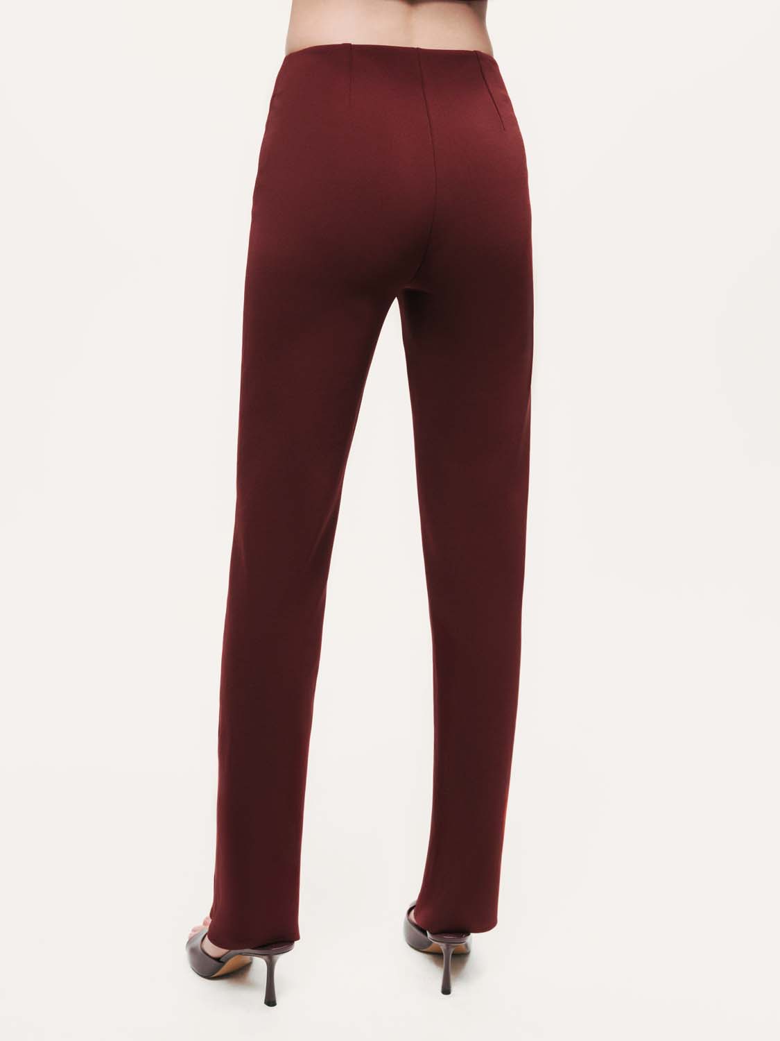 Zamansız çizgilere modern bir dokunuş katan bu yırtmaçlı yüksek bel pantolon, şehirli şıklığın güçlü bir yansıması. Regular fit kesimi ve tam kalıbı sayesinde vücuda zarifçe otururken, yüksek bel formu silueti uzun ve dengeli gösterir. Dokuma kumaşıyla formunu koruyan tasarım, gizli fermuar kapamasıyla kusursuz bir bitiş sunar. Paçalarındaki yırtmaç detayı, sade şıklığa dinamik bir hareket katarak modern bir duruş yaratır. Astarsız yapısı hafiflik sağlarken, ofis kombinlerinden akşam stillerine kadar uzanan her görünümde zarif bir dokunuş sunar.