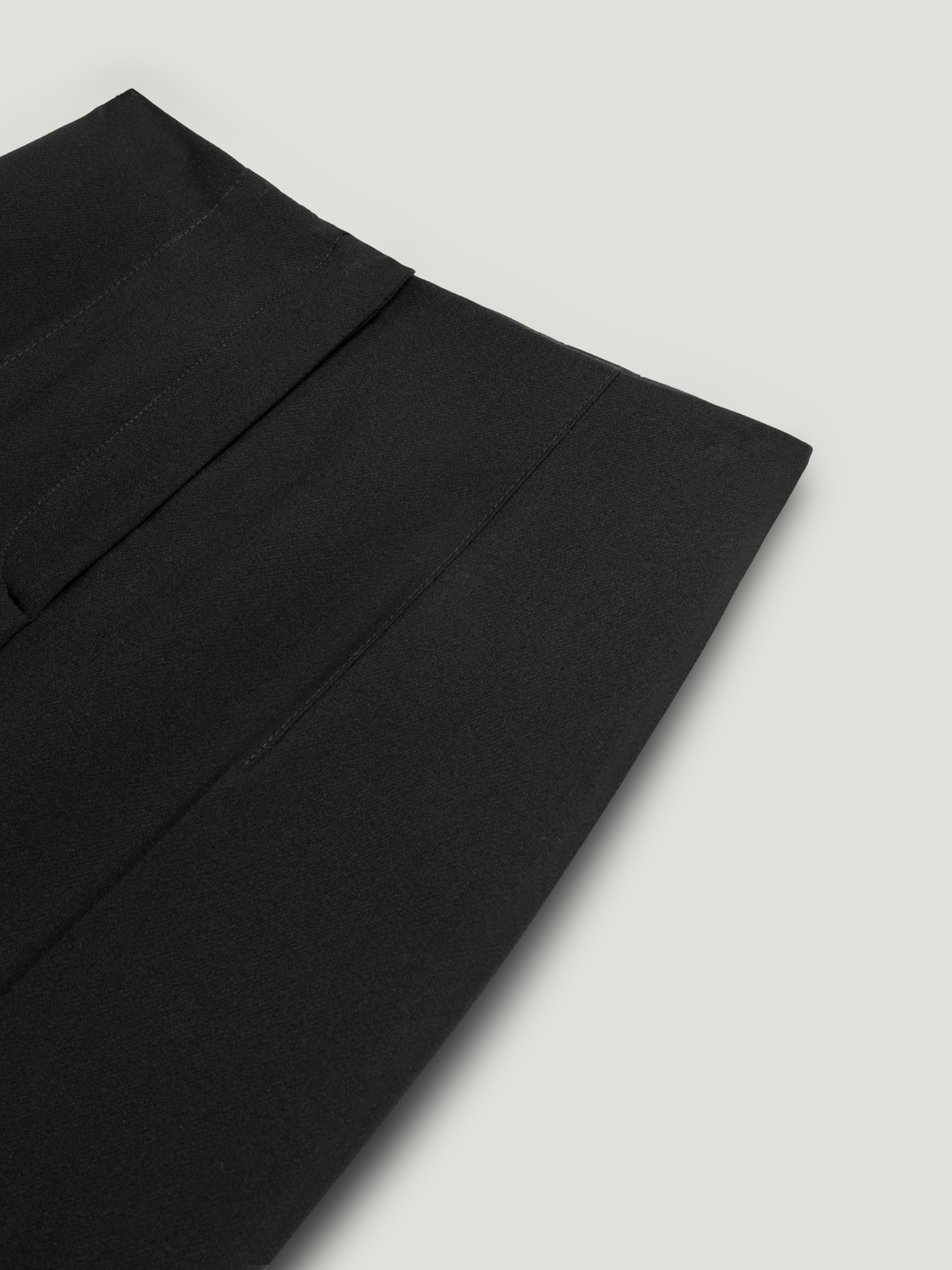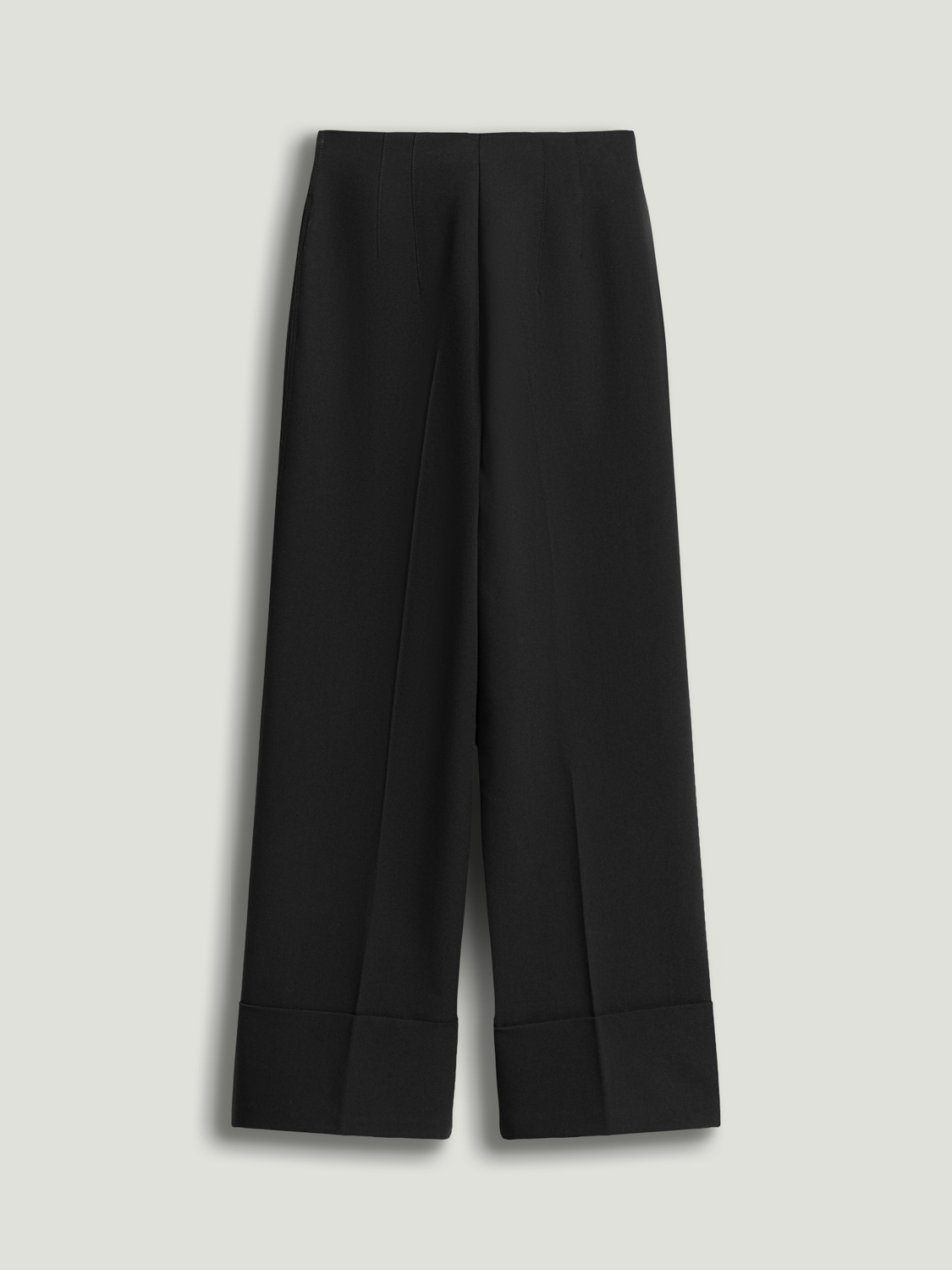 Zamansız bir silueti modern bir yorumla sunan bu duble paça pantolon, sofistike tarzın güçlü bir yansıması. Relaxed fit kesimi ve tam kalıbı sayesinde dökümlü ama zarif bir duruş sergilerken, yüksek bel formu bel hattını vurgulayarak uzun ve dengeli bir görünüm oluşturur. Kanca ve pat fermuar kapamasıyla minimal bir bitiş sunan tasarım, duble paça detayıyla klasik çizgilere modern bir dokunuş ekler. Astarsız dokuma kumaşı hafiflik ve konfor sağlarken, ofis şıklığından şehirli gündüz stillerine kadar her ortamda zarif bir duruş sunar.