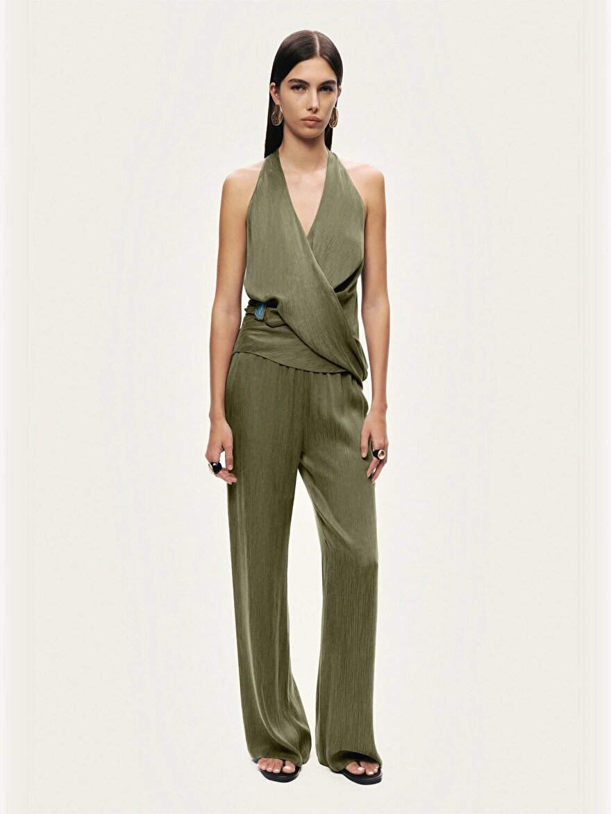 Rahatlığı ve şıklığı bir arada arayanlar için tasarlanmış bu pantolon, relaxed fit kesimiyle gün boyu konfor sağlıyor. Astarsız dokusu ve hafif dokuma kumaşı, hareketlerinize özgürlük katarken ince gizli fermuar kapama detayları modern bir dokunuş sunuyor. Normal beli ve elastik belli yapısı sayesinde vücuda uyum sağlayan dökümlü düz paça tasarım, hem ofis stilinize hem de hafta sonu kombinlerinize zarif bir tamamlayıcı oluyor.