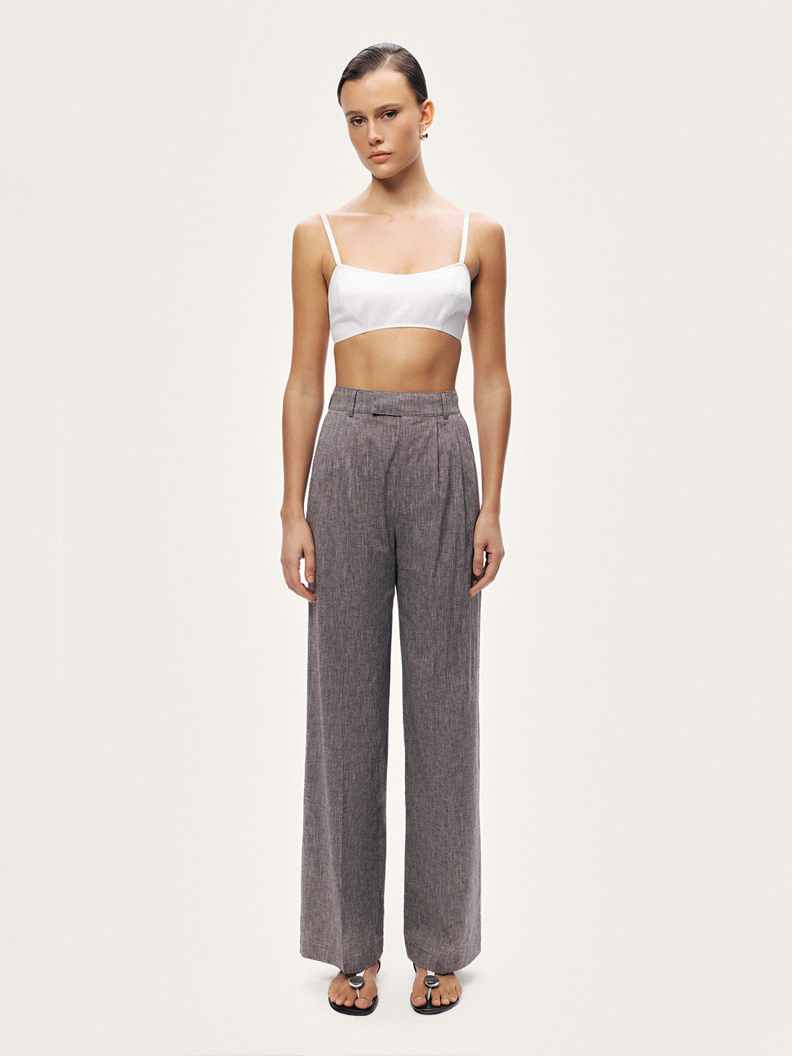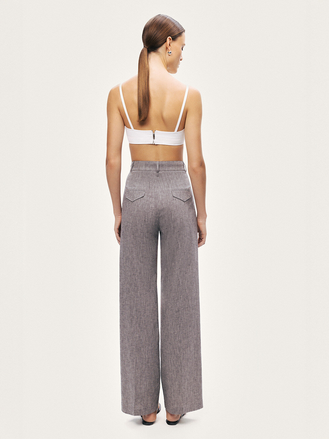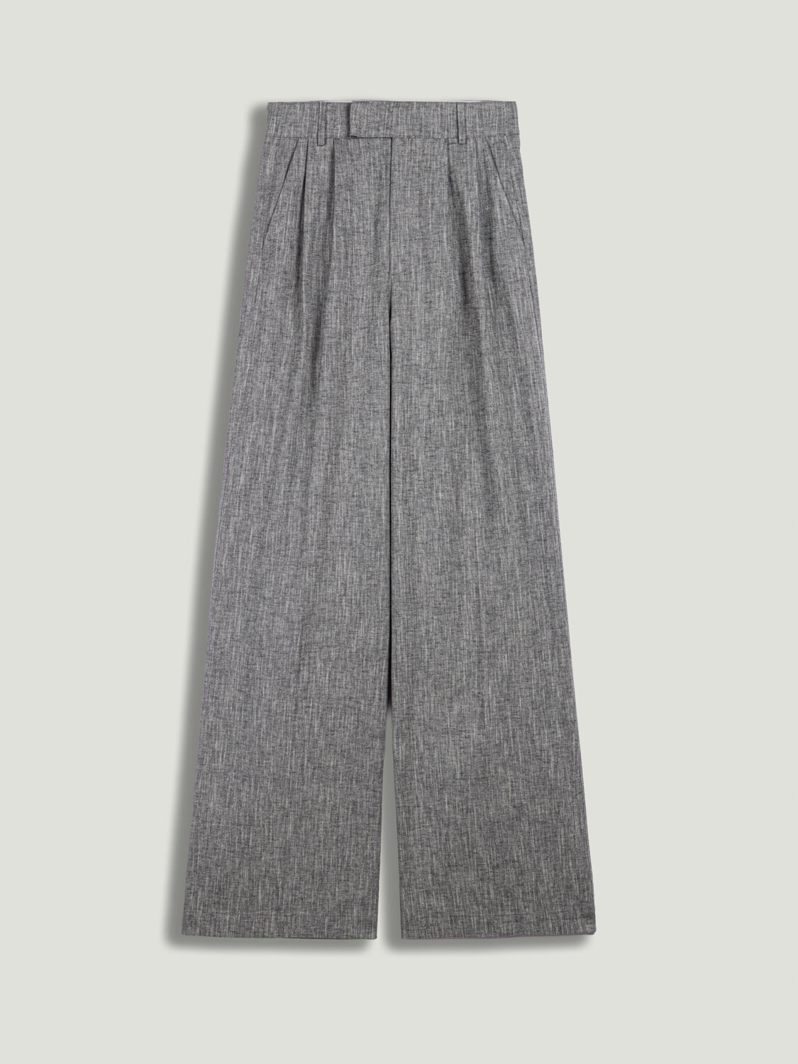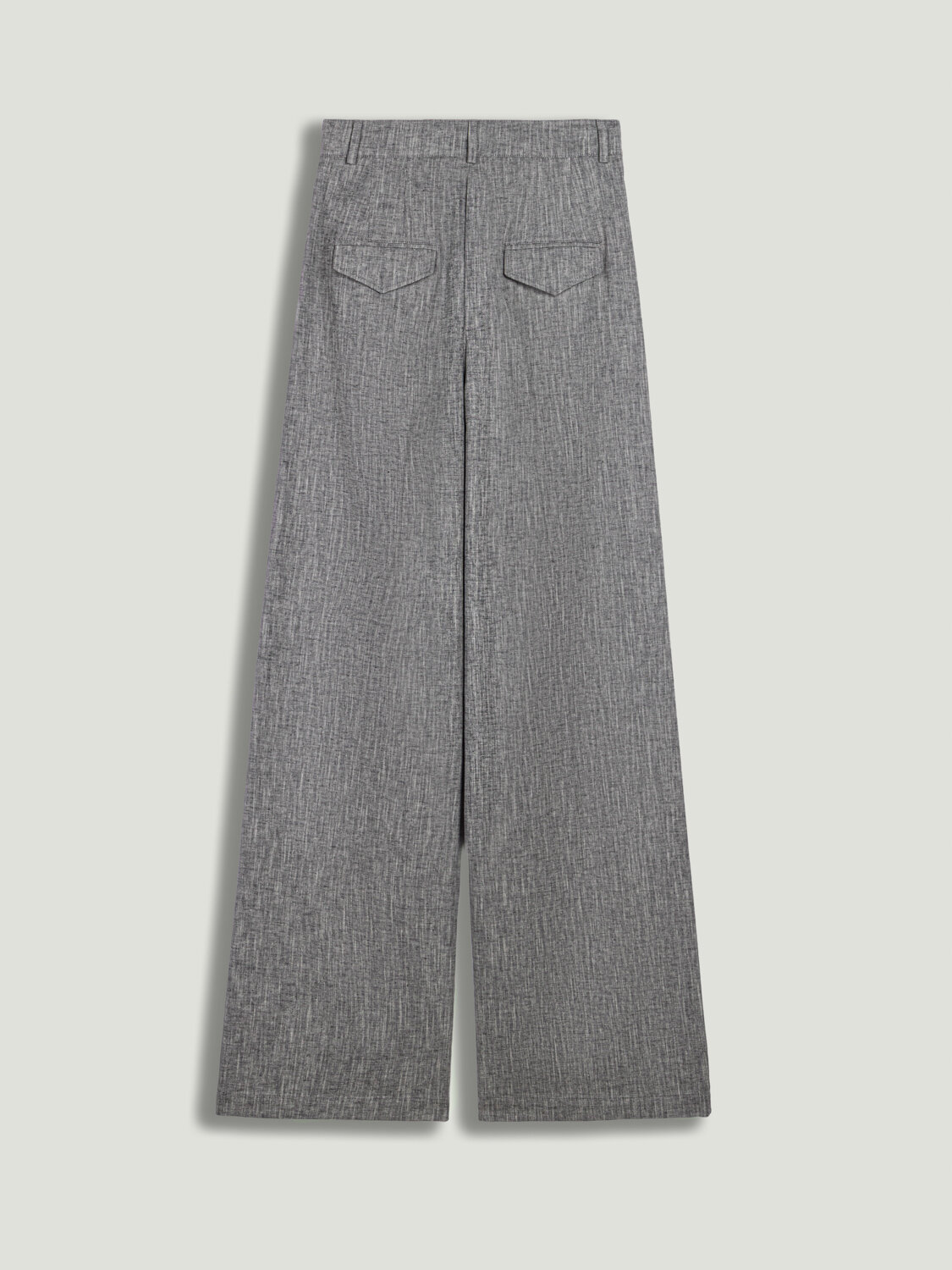 Regular fit kesimiyle dengeli ve konforlu bir siluet sunan bu pantolon, astarsız dokuma yapısıyla hafif ve rahat bir kullanım sağlar. Yüksek bel formu vücut hatlarını zarifçe vurgularken, geniş paça tasarımı akışkan ve modern bir duruş kazandırır. Gizli kanca ve fermuar kapaması temiz ve kusursuz bir görünüm sunarken, günlük kombinlerden ofis stiline kadar zahmetsiz ama etkili bir şıklık yaratmak isteyenler için ideal bir tamamlayıcıdır.