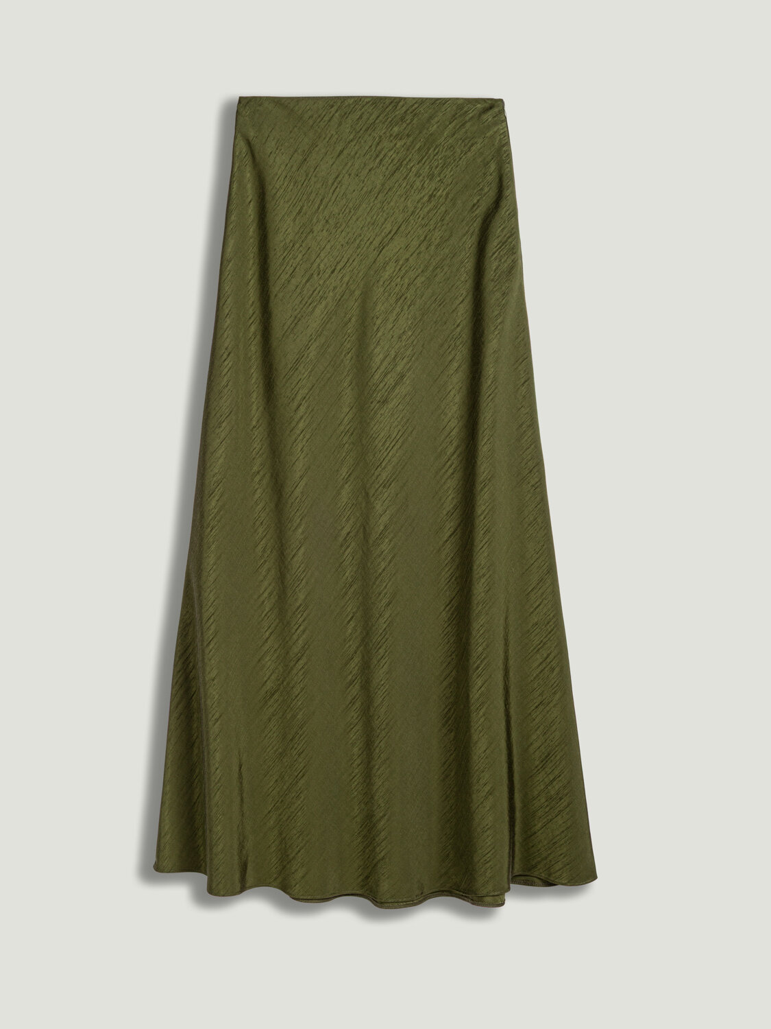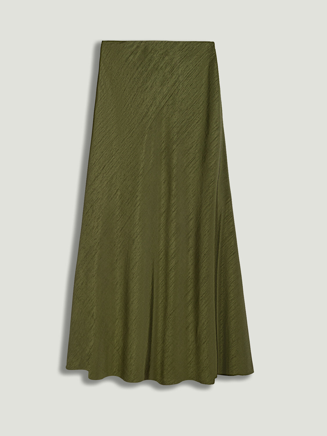 Zarif ve feminen siluetiyle öne çıkan bu midi çan etek, zamansız tasarımıyla modern stilin vazgeçilmez parçalarından biridir. Dokuma kumaşının yapılı formu gün boyu düzgün bir duruş sağlarken, regular fit kesimi konforlu ve dengeli bir kullanım sunar. Yüksek bel tasarımı bel hattını vurgulayarak daha ince ve zarif bir görünüm oluşturur. Çan formundaki kesimi eteğe akışkan bir hareket kazandırırken, midi boyu klasik ve sofistike bir stil sunar. İnce gizli fermuar kapama detayı ise minimal ve temiz bir bitiş sağlar. Hem günlük kombinlerde hem de şık davet stilinde rahatlıkla tercih edilebilecek zamansız bir parçadır.