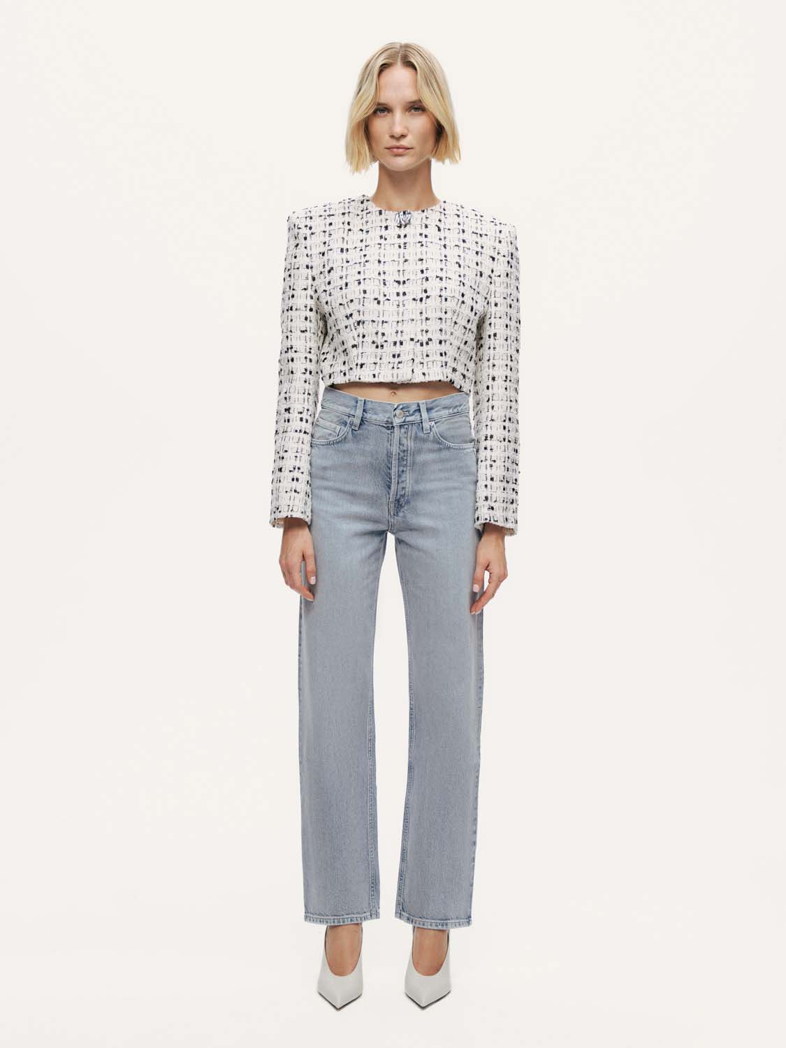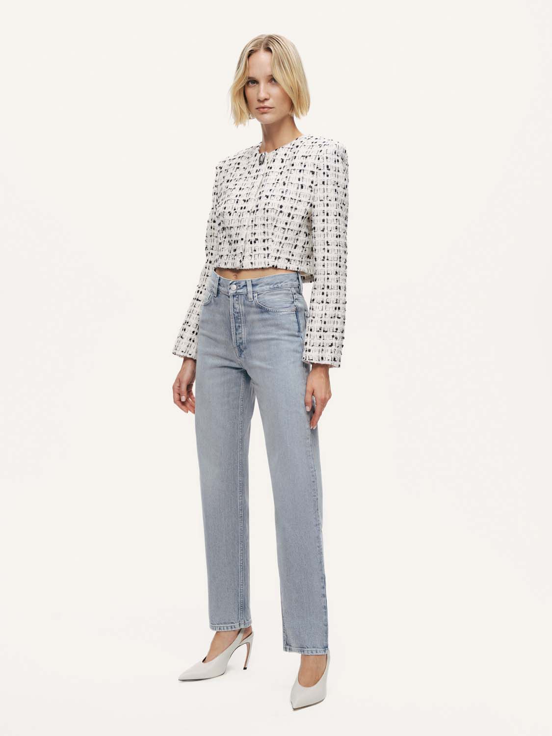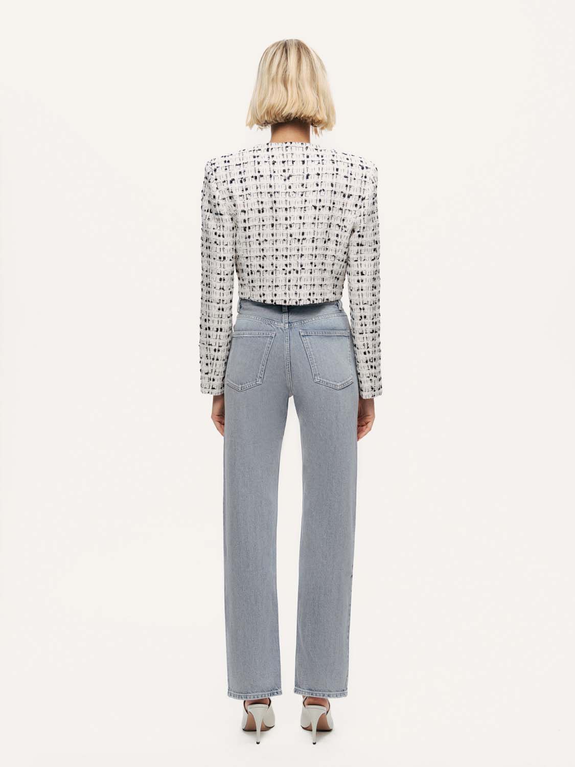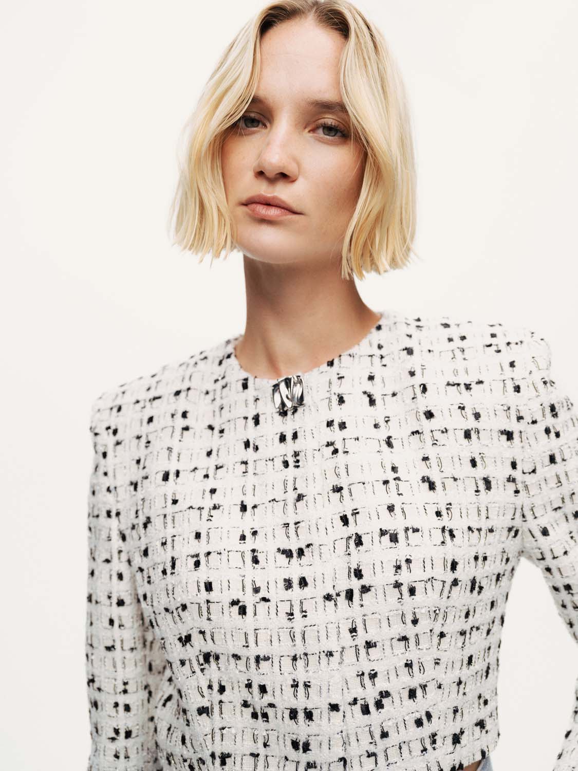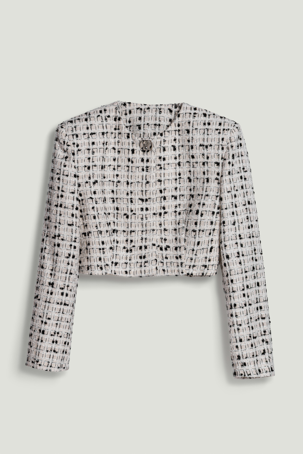 Klasik dokuları modern bir zarafetle buluşturan bu tüvit ceket, zamansız stilin en güçlü yorumlarından biri. Regular fit kesimi ve tam kalıbı sayesinde kusursuz bir duruş sunarken, vatka detayları omuz hattına yapı kazandırarak sofistike bir siluet yaratır. Astarlı iç yapısı konfor ve form desteği sağlarken, gizli çıtçıt kapaması sade bir bitişe olanak tanır. Parlak metal düğmeler, ceket tasarımına lüks bir dokunuş ekleyerek dikkat çekici bir kontrast oluşturur. Uzun kollu formu ve zengin tüvit dokusuyla, hem klasik hem modern stilleri zahmetsizce tamamlayan bu parça, her gardırobun yatırım niteliğinde bir ögesi.