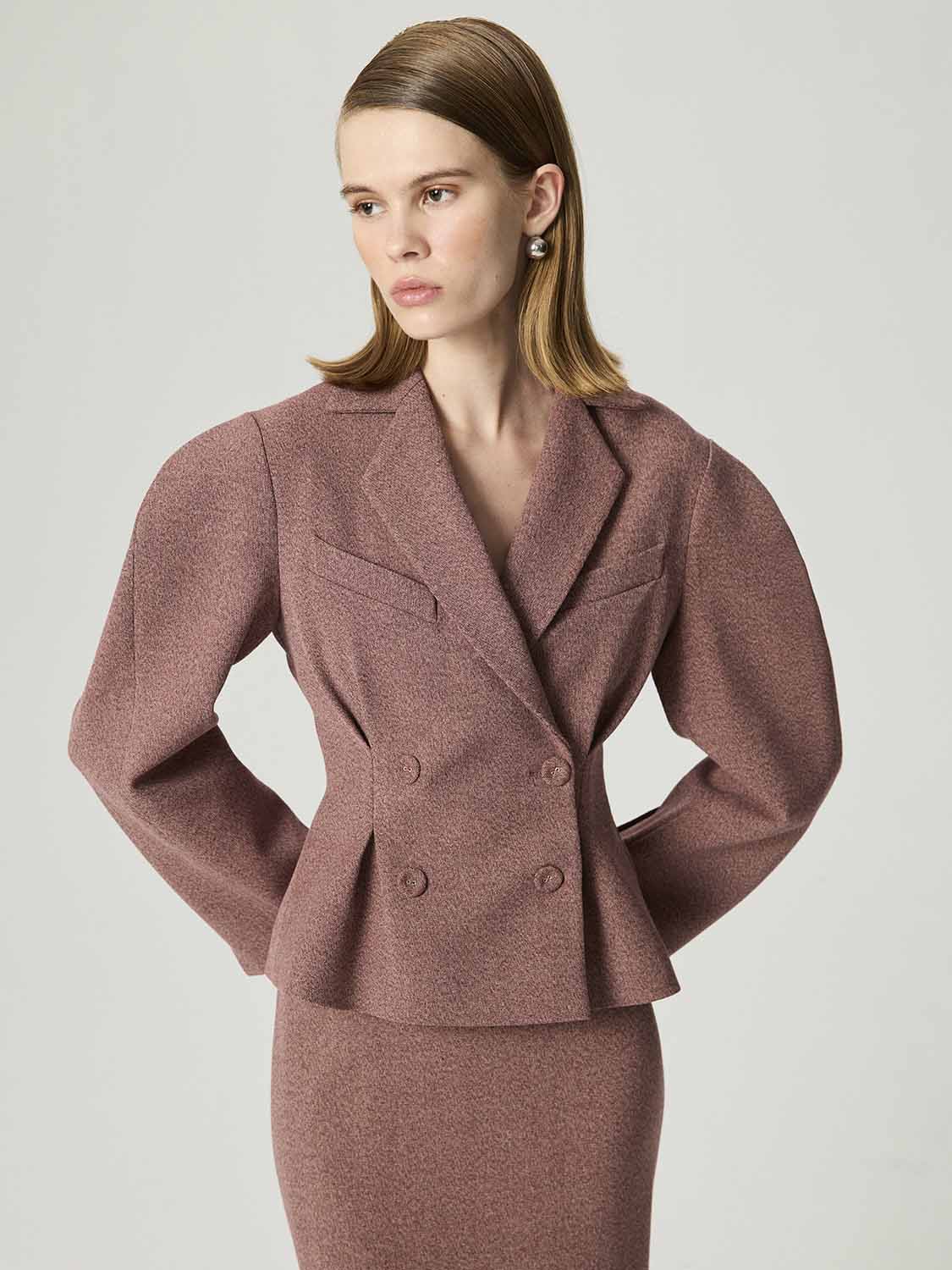 Ürün Açıklaması: Regular fit, tam kalıp, astarlı, dokuma, uzun kollu, düğme kapamalı, fileto cepli, katlı yakalı, kruvaze kapamalı ceket
