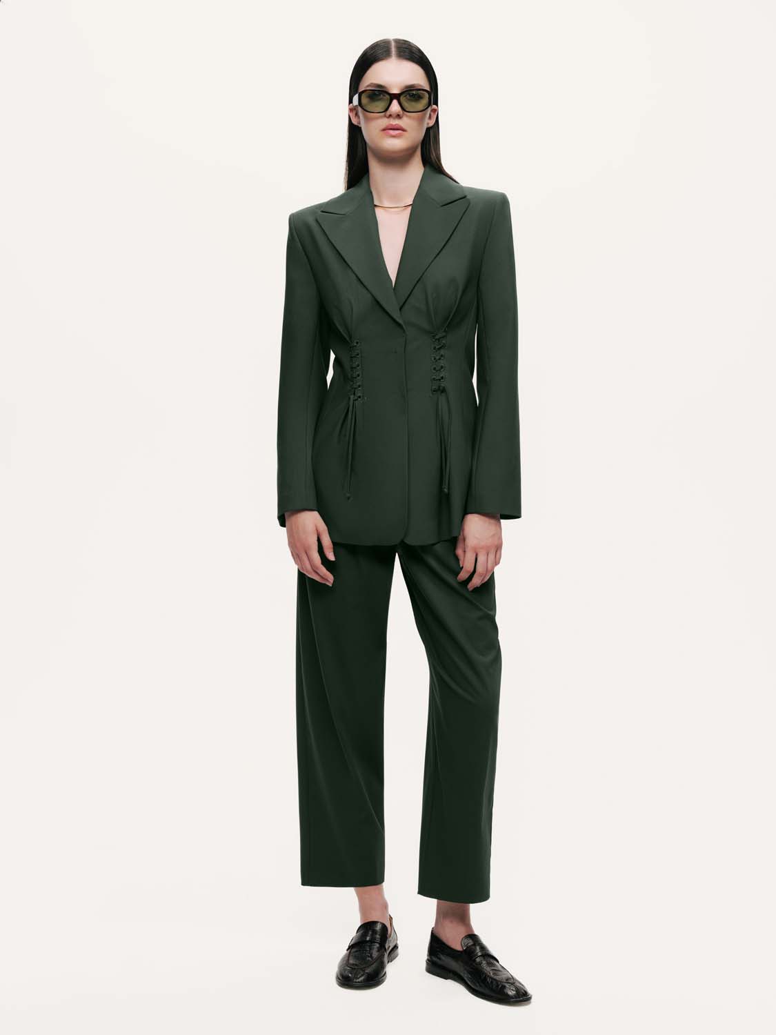 Regular fit ve tam kalıp tasarımıyla güçlü bir siluet sunan bu vatkalı ceket, modern zarafeti detaylarla buluşturuyor. Astarlı dokuma yapısı konforlu bir kullanım sağlarken, katlı V yakası tasarıma sofistike bir duruş katıyor. Çıtçıt kapamalı ön kısmı temiz ve minimal bir görünüm yaratırken, kurdele detayı cekete feminen ve özgün bir dokunuş ekliyor. Hem ofis şıklığında hem de özel davetlerde stilinizi öne çıkaracak dikkat çekici bir parça.