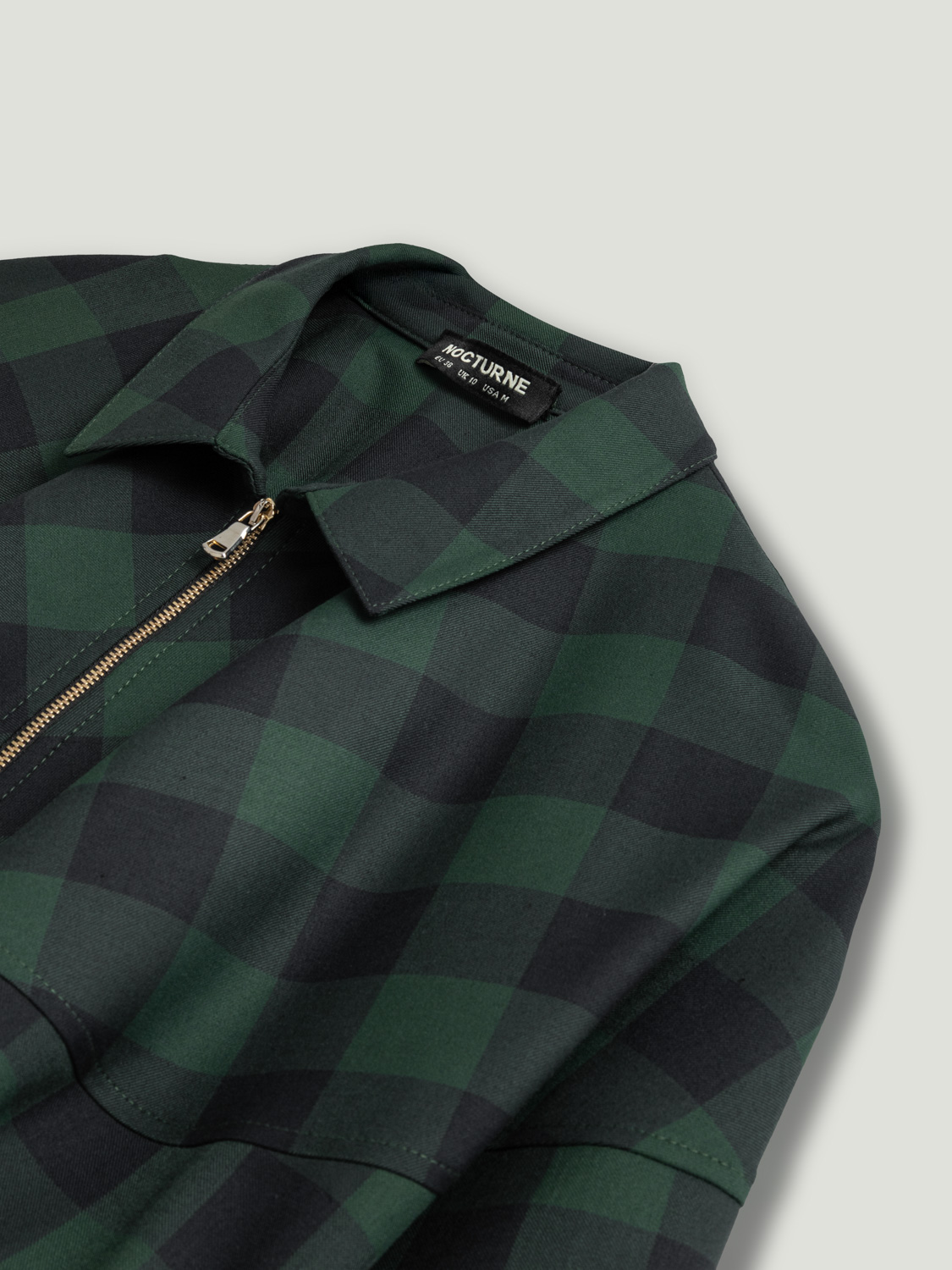 Ürün Açıklaması: Regular fit, tam kalıp, astarsız, dokuma, fermuar kapamalı, uzun kollu, katlı yakalı, elastik belli, kareli dökümlü ceket