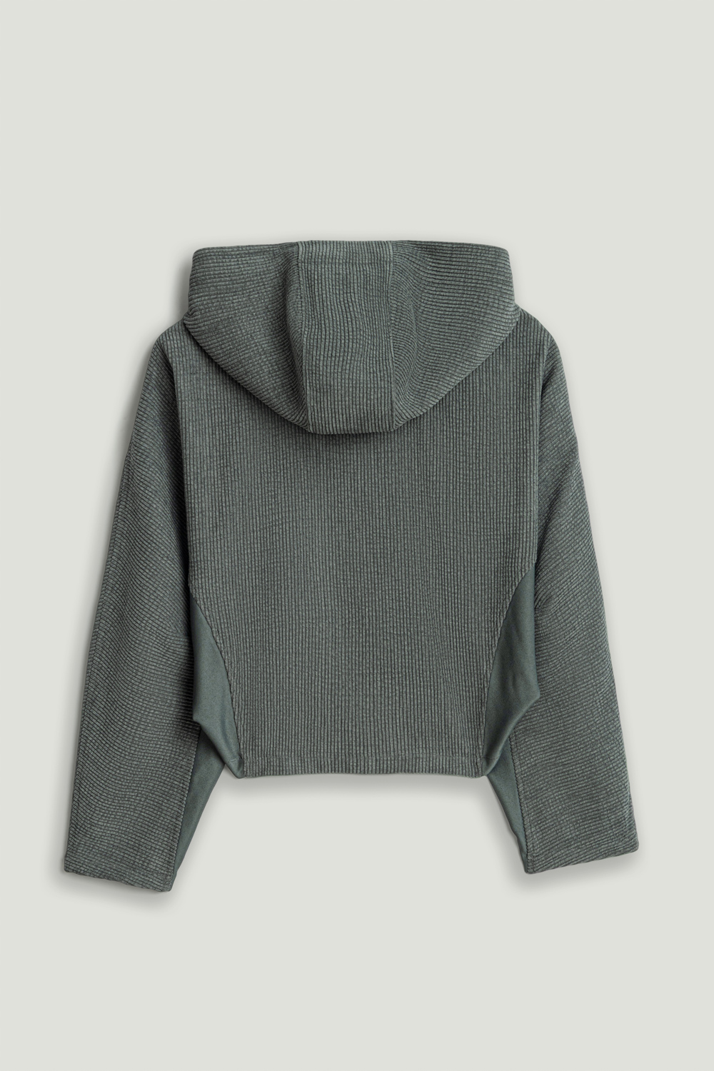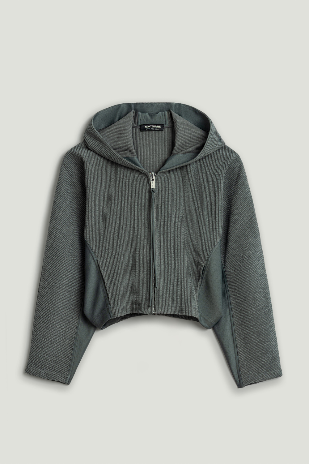 Ürün Açıklaması: Regular fit, tam kalıp, astarsız, önden metal fermuar kapamalı, uzun kollu, sıfır yaka, dökümlü, kapüşonlu ceket