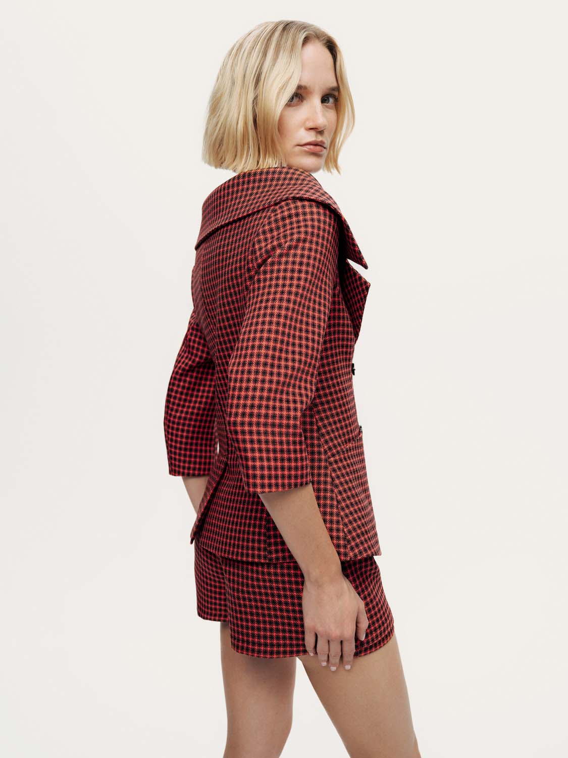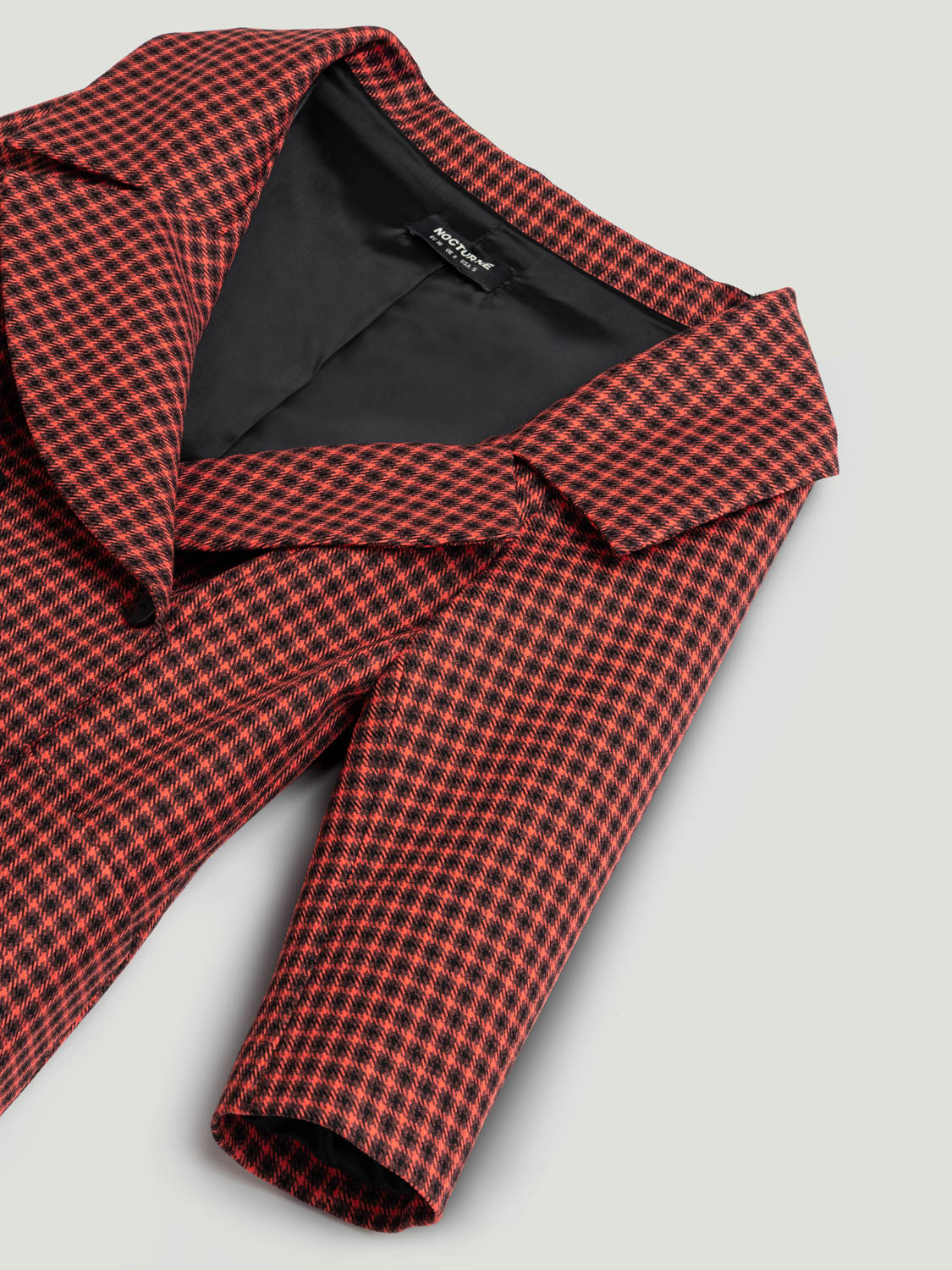 Ürün Açıklaması: Regular fit, tam kalıp, astarlı, dokuma, önden düğme kapamalı, yarım kollu, katlı geniş yakalı, kare desenli ceket