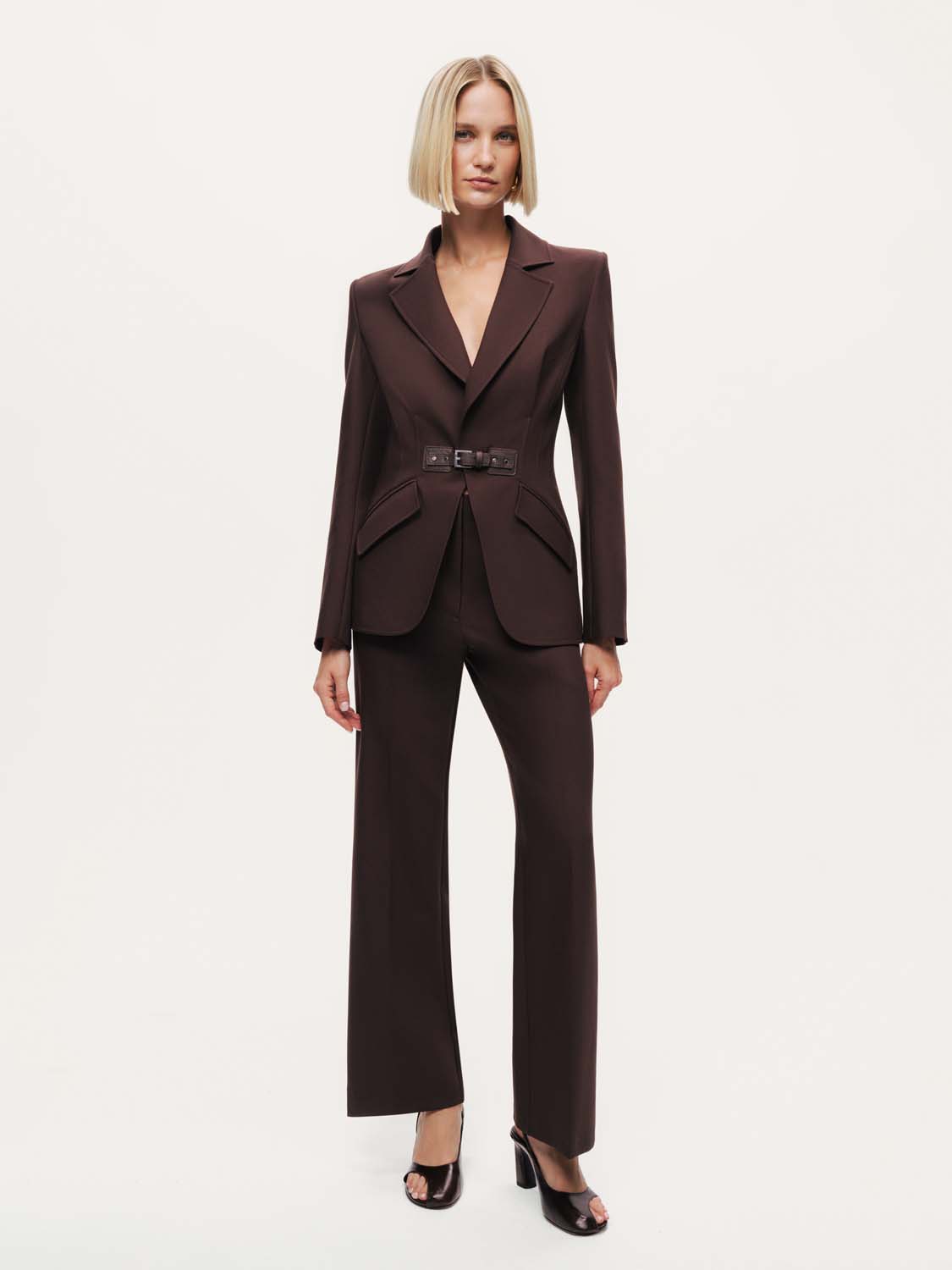 Ürün Açıklaması: Regular fit, tam kalıp, astarlı, uzun kollu, cepli, önden pensli, kemer tasarımlı bele oturan blazer ceket