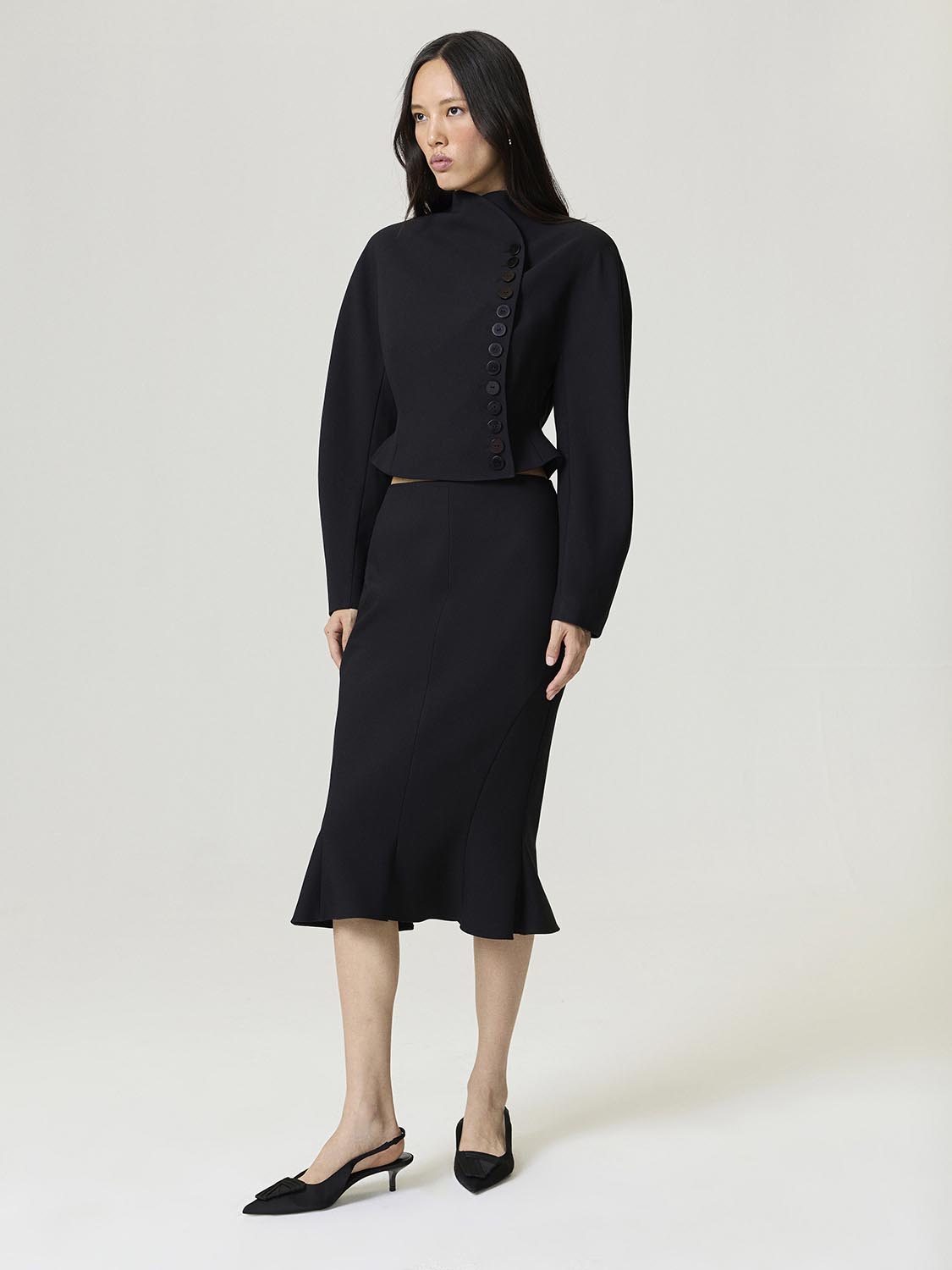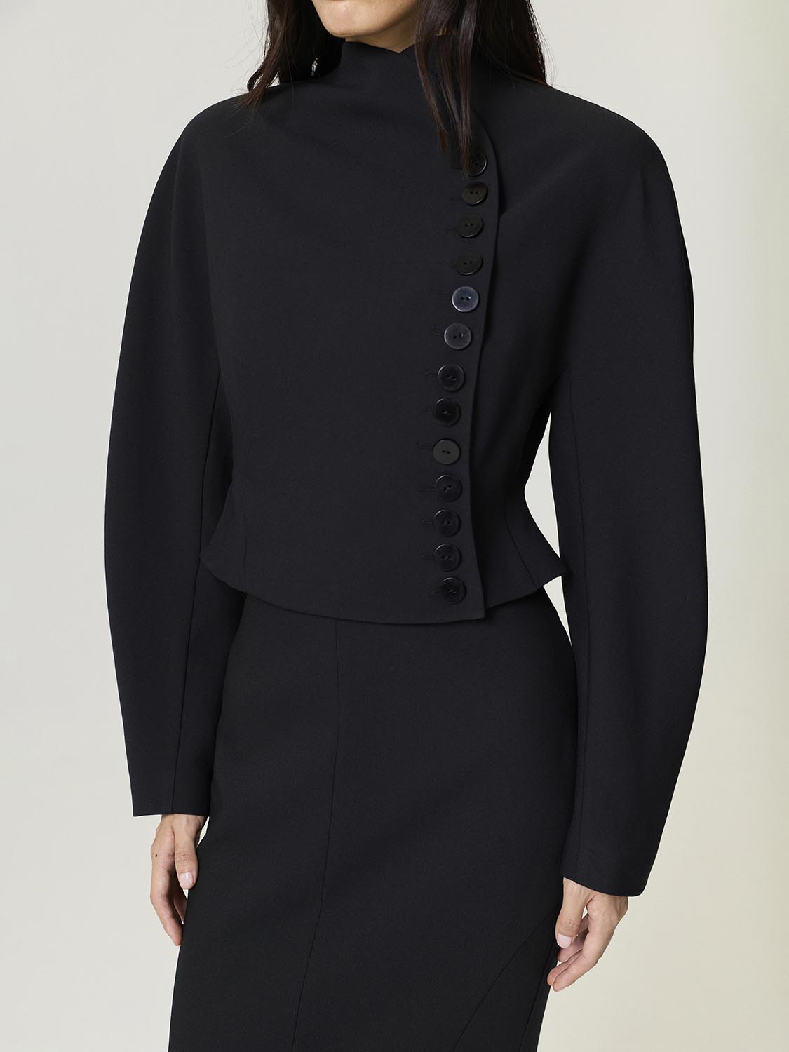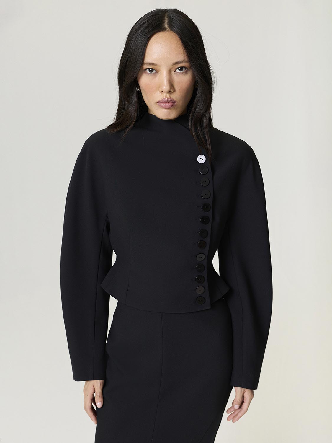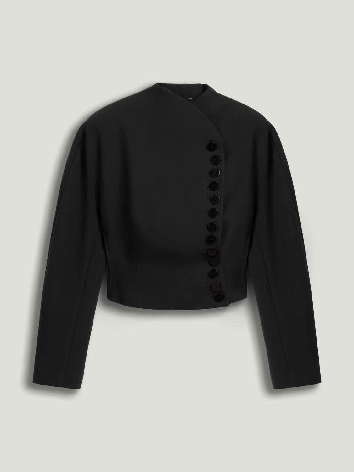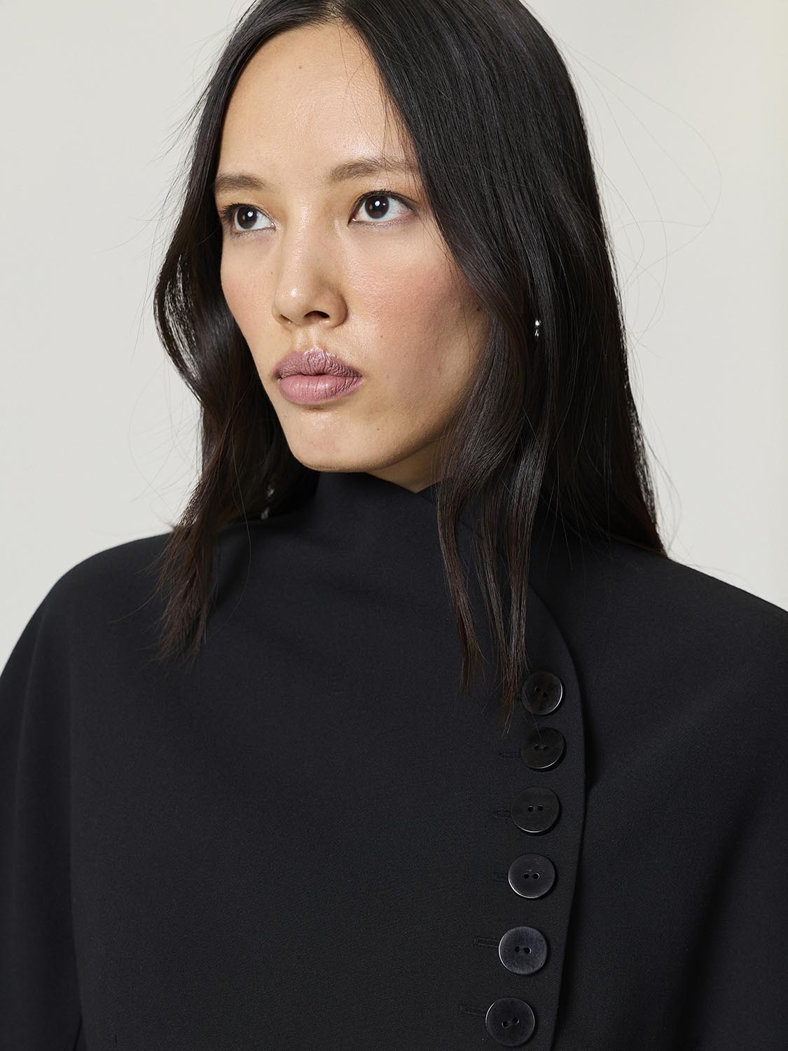 Ürün Açıklaması: Regular fit, tam kalıp, astarlı, dokuma, uzun kollu, dik yaka, vatkalı, asimetrik düğme kapamalı ceket