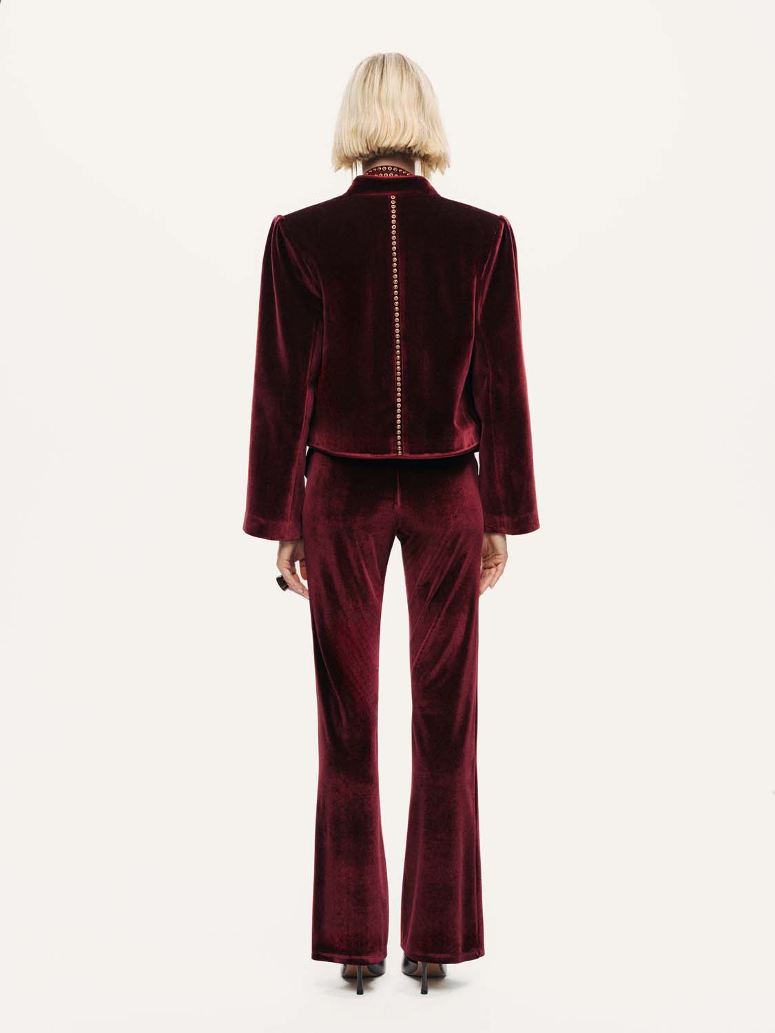 Regular fit ve tam kalıp tasarımıyla modern bir siluet sunan bu kadife crop ceket, dokusunun lüks hissini güçlü detaylarla birleştiriyor. Astarlı yapısı konforlu bir kullanım sağlarken, uzun kolları ve vatkalı omuzları cekete etkileyici bir duruş kazandırıyor. Zımba detayları tasarıma cesur ve karakterli bir hava katarken, crop boyu modern şehir stiline enerjik bir dokunuş ekliyor. Hem akşam kombinlerinde hem de iddialı günlük stillerde güçlü bir ifade yaratan bu ceket, gardırobunuzun göz alıcı parçalarından biri olmaya aday.
