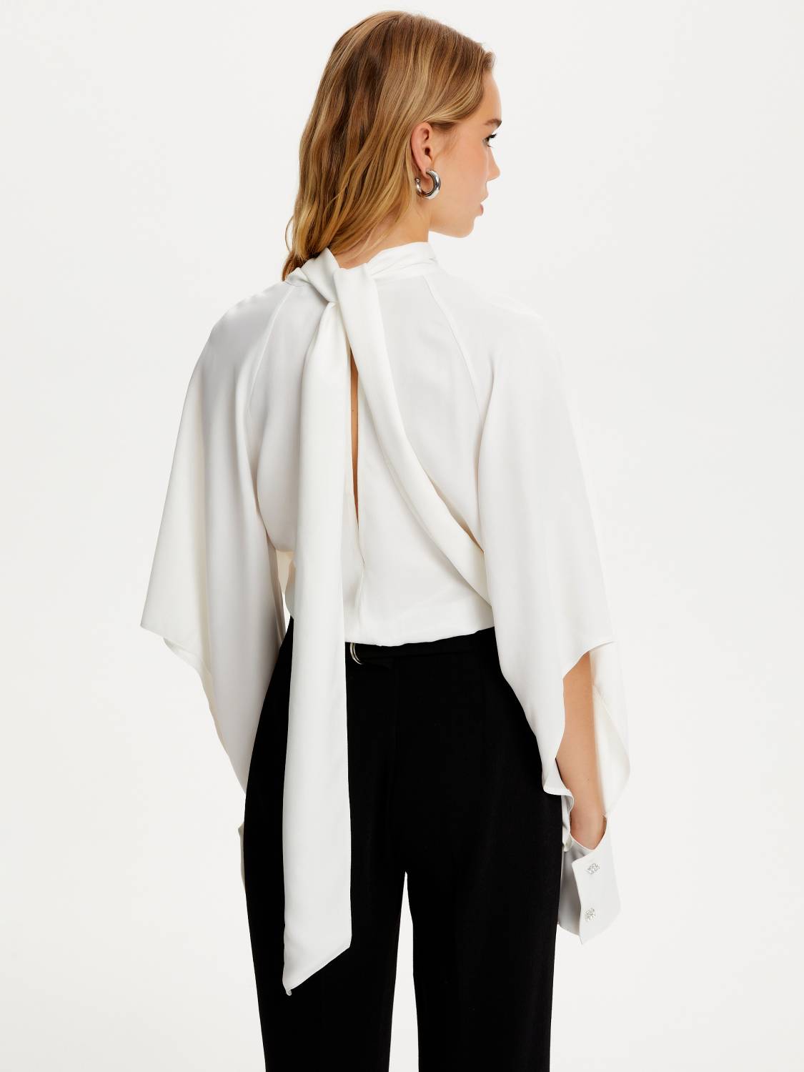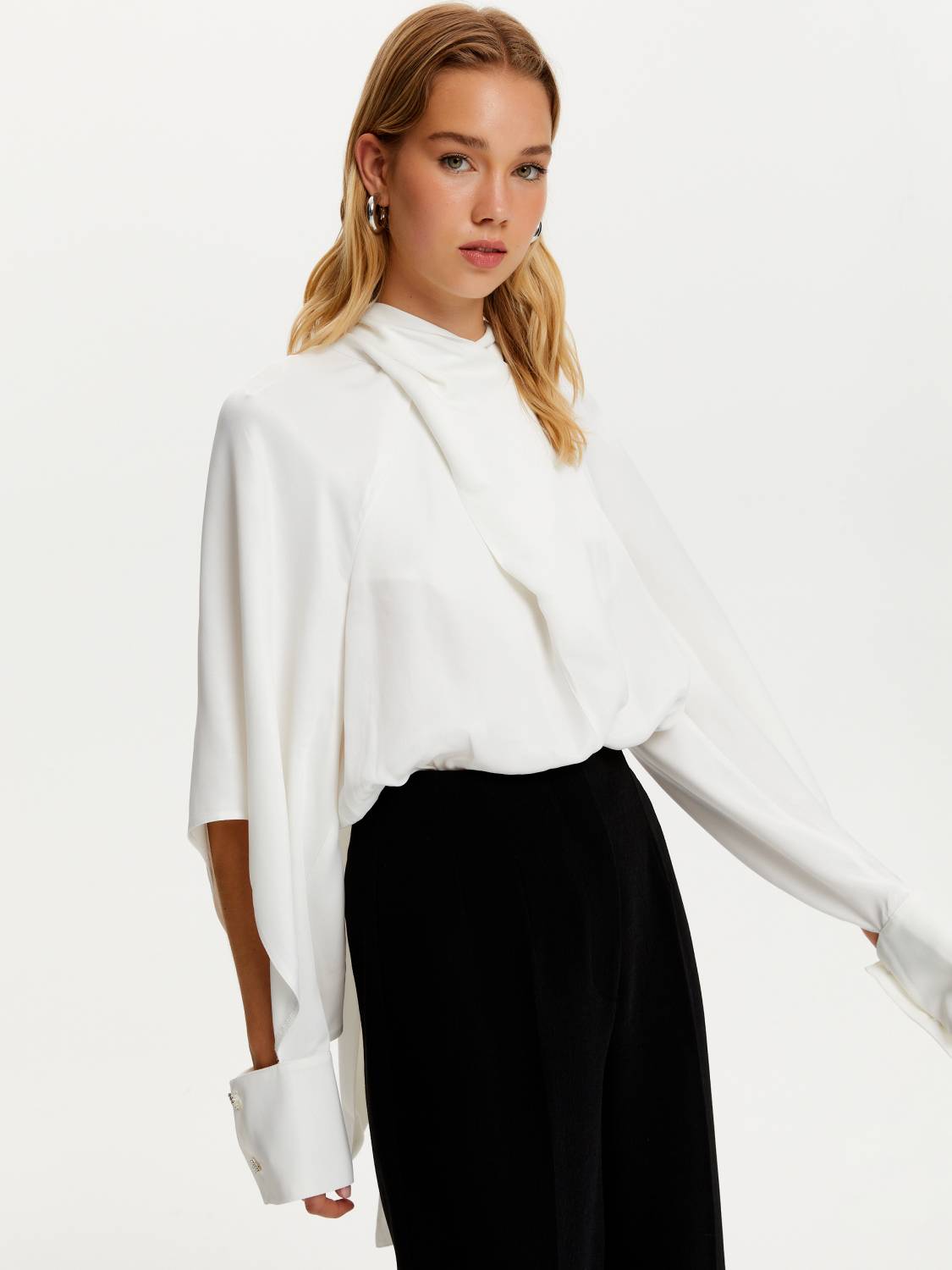• Ürün Açıklaması: Önü çapraz, bağcıklı, kolları pencere detaylı, kristal taş düğmeli,alttan çıtçıtlı bluz.