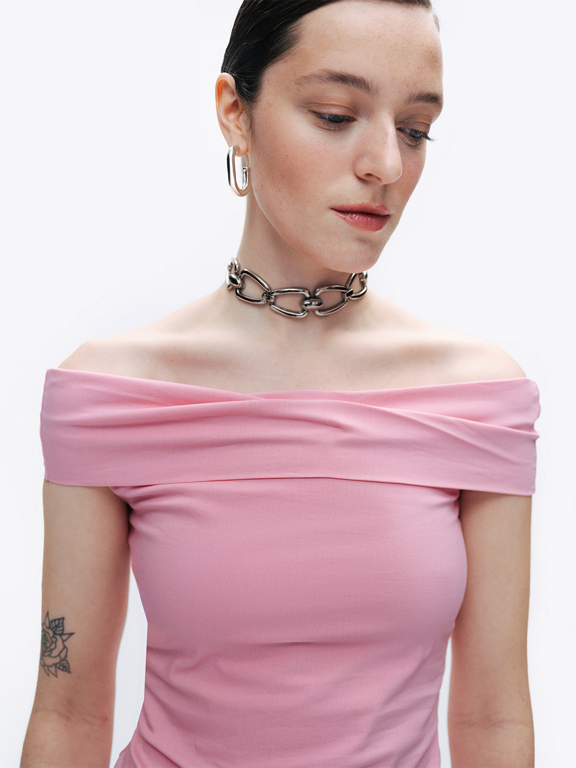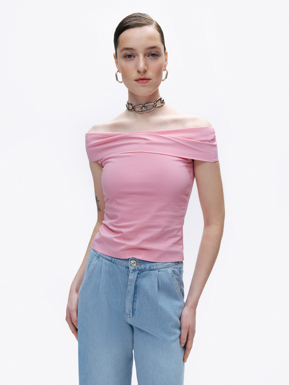 Ürün Açıklaması: Regular fit, tam kalıp, astarsız, garnili, straplez yaka, açık omuzlu bluz