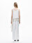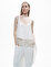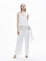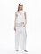Ürün Açıklaması: Regular fit, tam kalıp, astarsız, garnili, dokuma, kolsuz, geniş yaka, boncuk işlemeli bağlama detaylı bluz