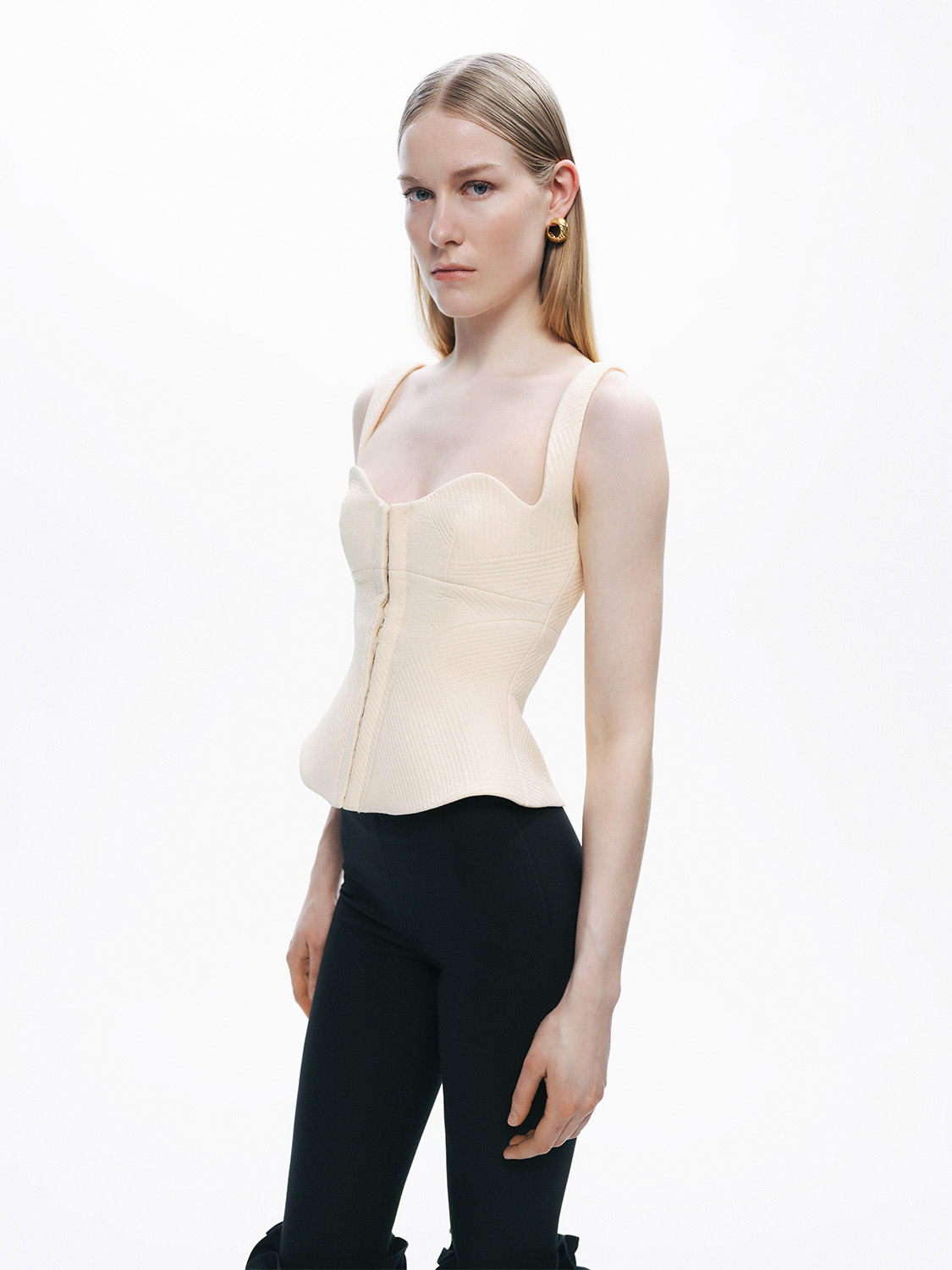 Ürün Açıklaması: Slim fit, tam kalıp, astarsız, dokuma, agraf kapamalı, kolsuz, kalp yaka, kup detaylı, korse tasarımlı bluz