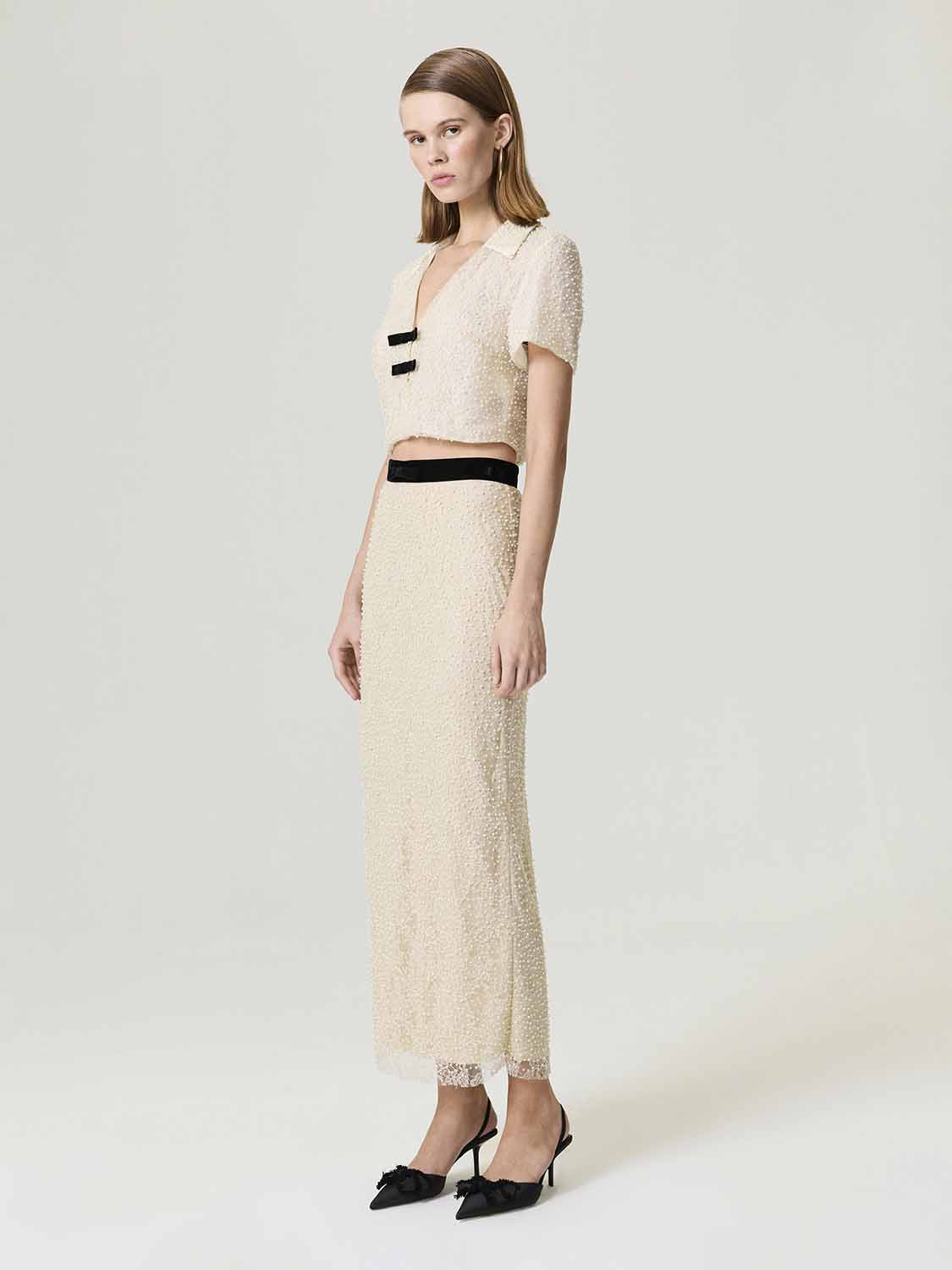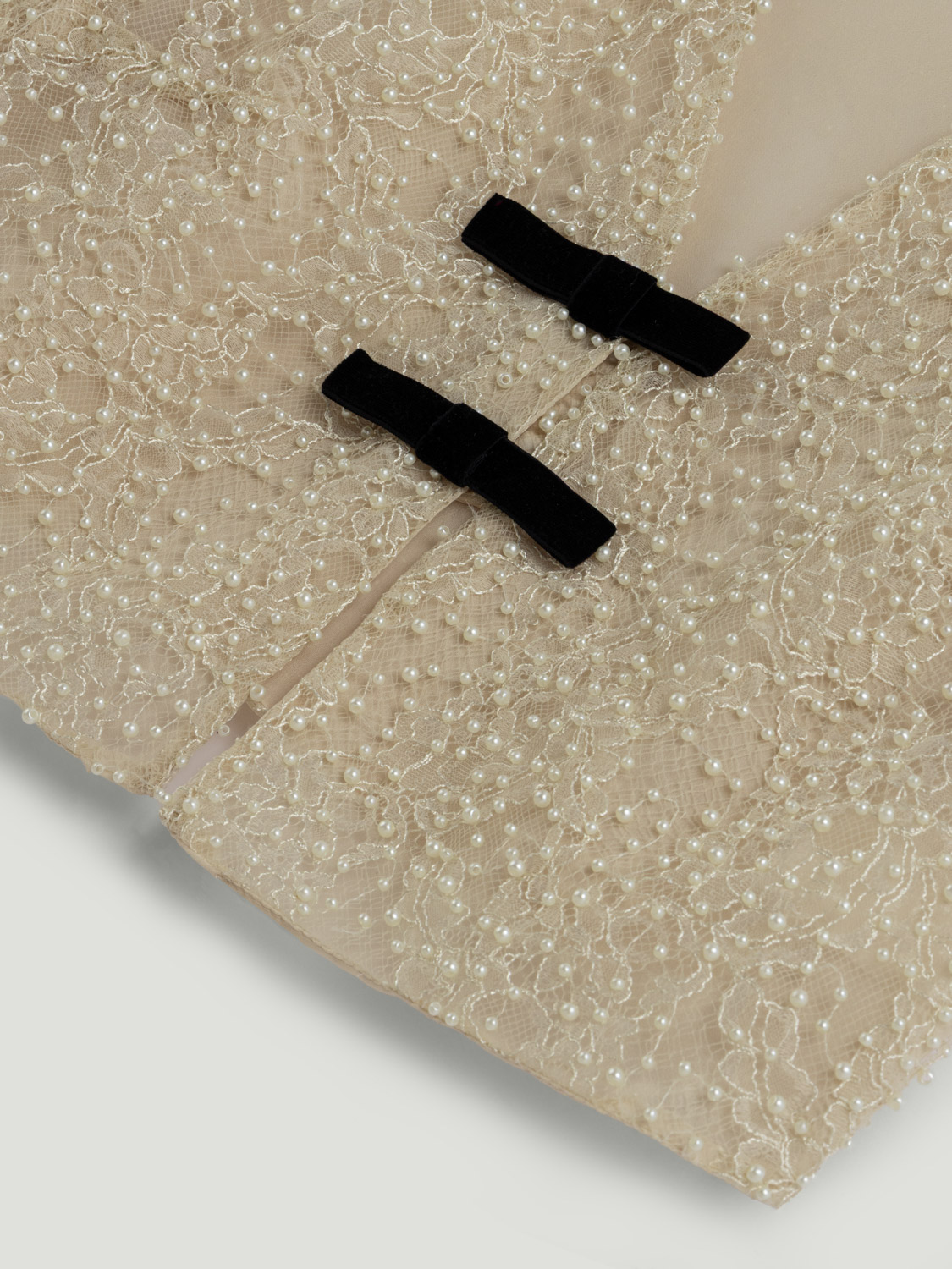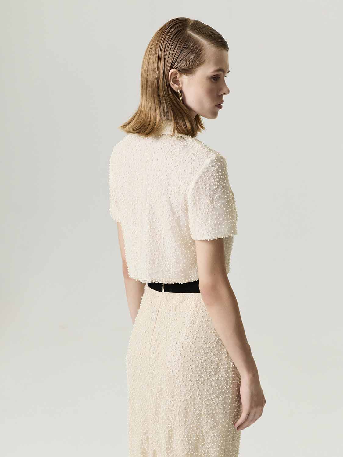 Ürün Açıklaması: Regular fit, tam kalıp, astarlı, dokuma, agraf kapamalı, yarım kollu, katlı v yakalı, inci işlemeli, fiyonk detaylı bluz