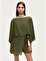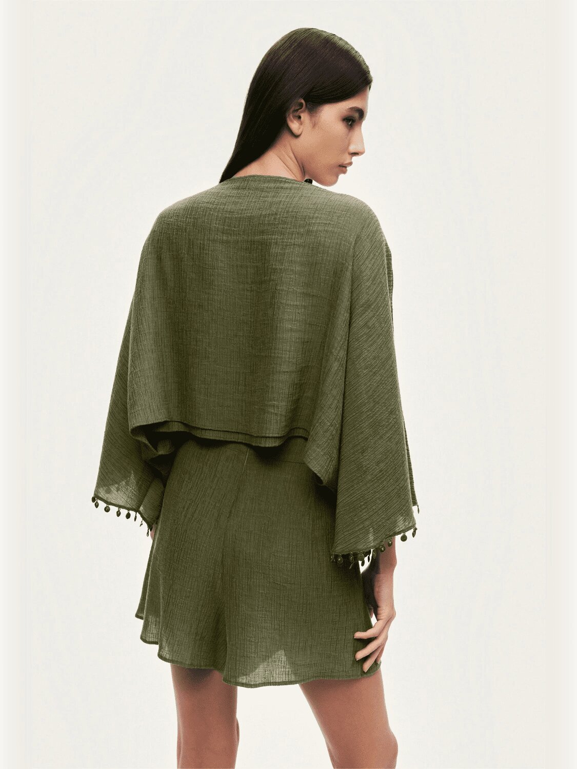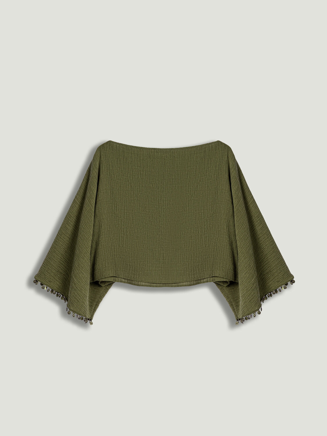 Modern ve özgün tasarımıyla öne çıkan bu bluz, rahat kesimi ve dikkat çekici detaylarıyla stilinize güçlü bir dokunuş katar. Dokuma kumaşının hafif ve akışkan yapısı gün boyu konfor sunarken, oversize fit kesimi rahat ve modern bir siluet oluşturur. Kayık yaka tasarımı omuz hattını zarif bir şekilde vurgularken, yarasa kol formu bluze dinamik ve çağdaş bir karakter kazandırır. Aksesuar detayları tasarıma sofistike ve özgün bir vurgu ekleyerek stilinizi tamamlar. Hem günlük kombinlerde hem de şık görünümlerde kolayca uyarlanabilen, çok yönlü bir parçadır.