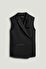 Bu özel kesim uzun yelek, yapılandırılmış silüetiyle modern bir gardırobun olmazsa olmazıdır. Birinci sınıf dokuma kumaştan üretilen yelek, keskin çentikli yakası, asimetrik ön düğme kapatması ve ekstra şıklık için hem kapaklı hem de şerit cepleriyle öne çıkar. Kolsuz ve çok yönlü olan bu yelek, bluz veya örgülerin üzerine zahmetsizce giyilebilir.