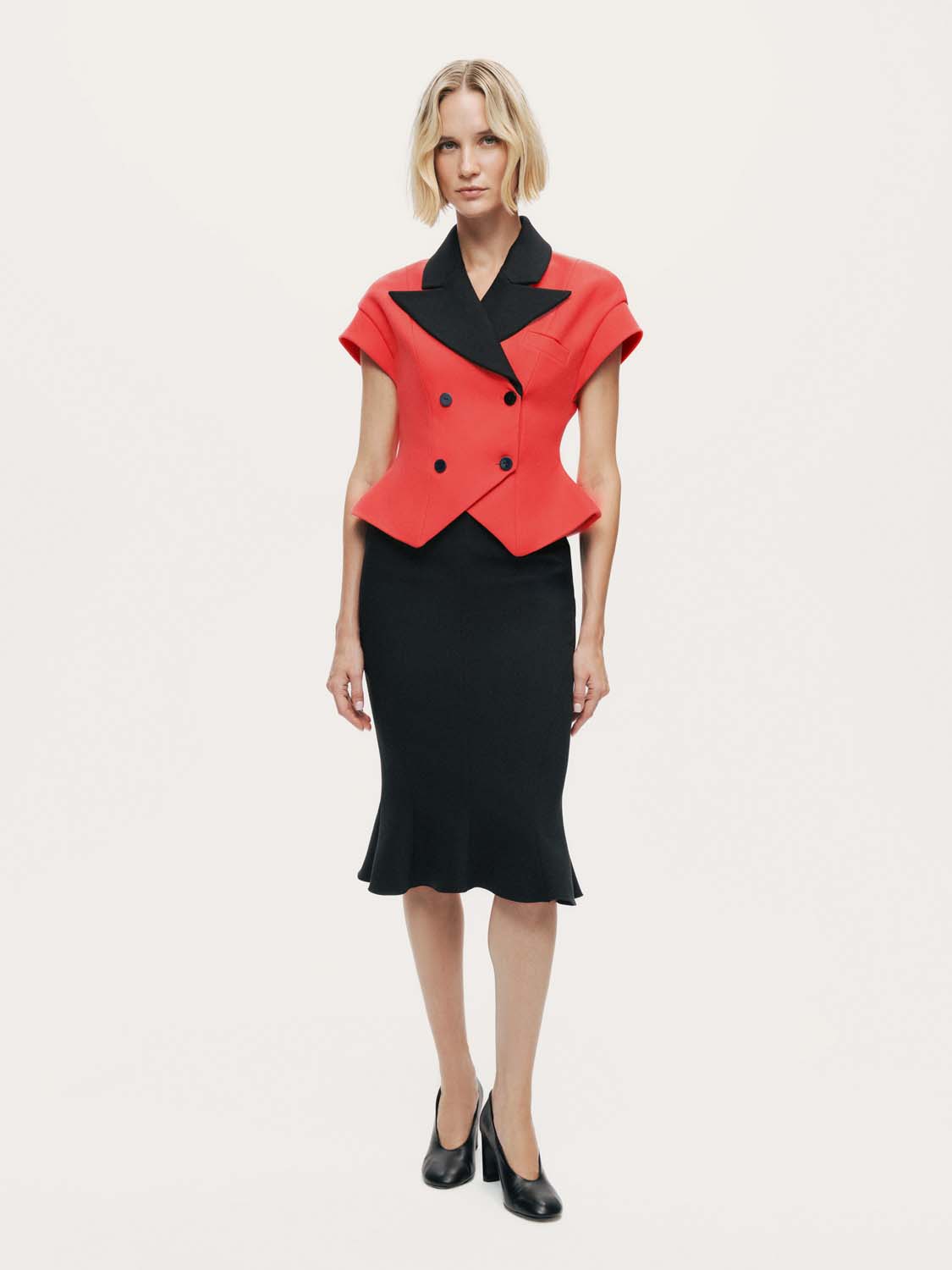 Modern ve sofistike bir stile sahip bu yelek, zarif detaylarıyla dikkat çeker. Slim fit kalıbı, vücuda oturarak şık bir siluet oluşturur. Astarlı dokuma kumaşı ile kaliteli bir duruş sunarken, düğme kapama detayı klasik bir görünüm kazandırır. Düşük kol kesimi modern bir dokunuş eklerken, kontrast katlı kruvaze yakası modele karakteristik bir hava verir. Hem ofis hem şehir şıklığında kullanılabilecek bu yelek, katmanlı kombinlerin vazgeçilmez parçasıdır.
