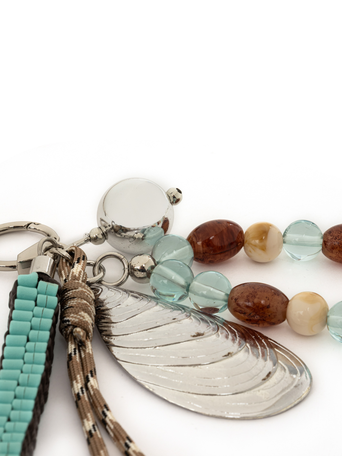 Ürün Açıklaması: Boncuklu, istiridye aksesuarlı çanta charmı