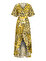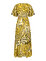 Ürün Açıklaması: V yaka, fermuarlı, kısa kollu, etek ucu ve kolları volanlı, asimetrik volanlı elbise